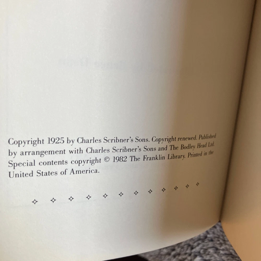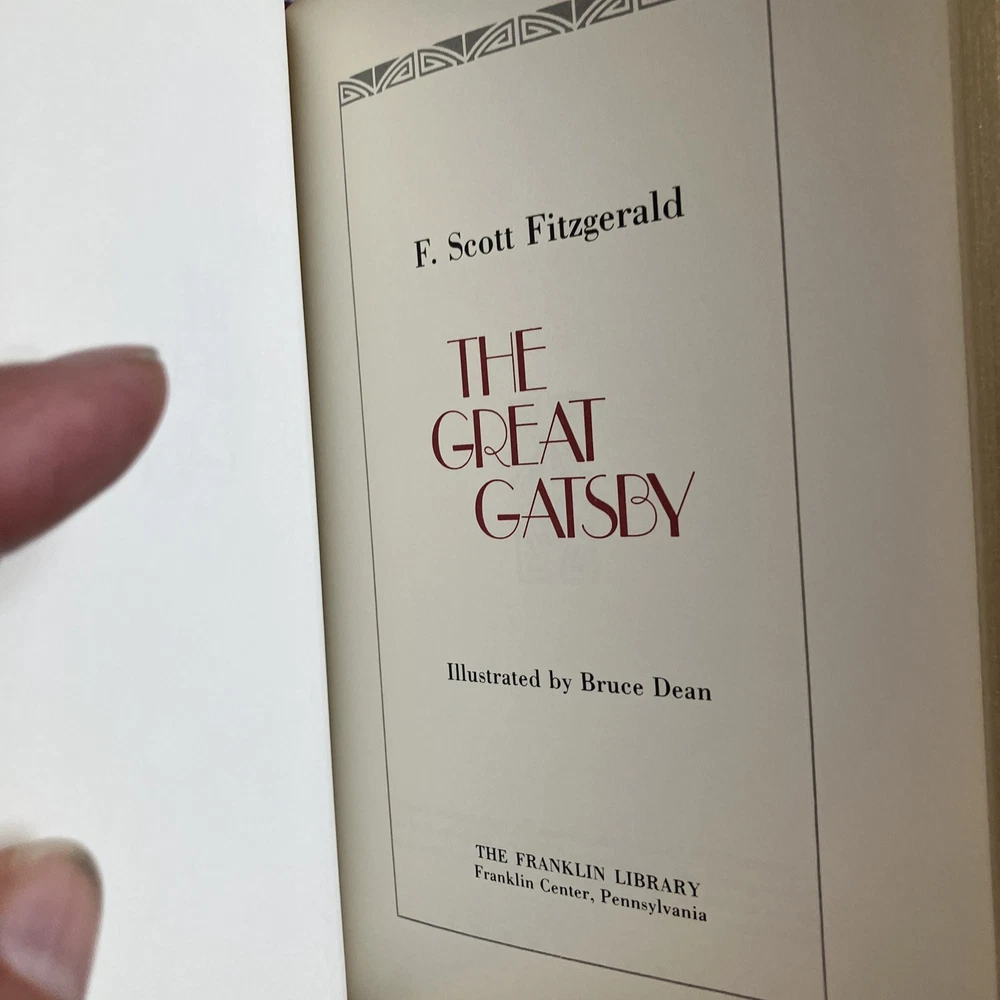 The product is a first edition, collector's edition of "The Great Gatsby" by F. Scott Fitzgerald, published by Franklin Library in 1982. It features a luxurious leather binding with gold gilding, making it a valuable and visually appealing addition to any book collection. This special edition also includes illustrations and is printed in English, showcasing the classic story in a unique and elegant format. Please see all photos.I Only Ship Overseas Through Ebay Global Shipping, If you are unhappy with item,please contact me to resolve the problem before opening a case,I value your business and work hard to keep a top seller rating, Thank You!