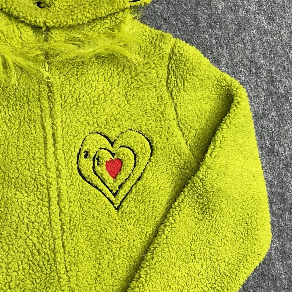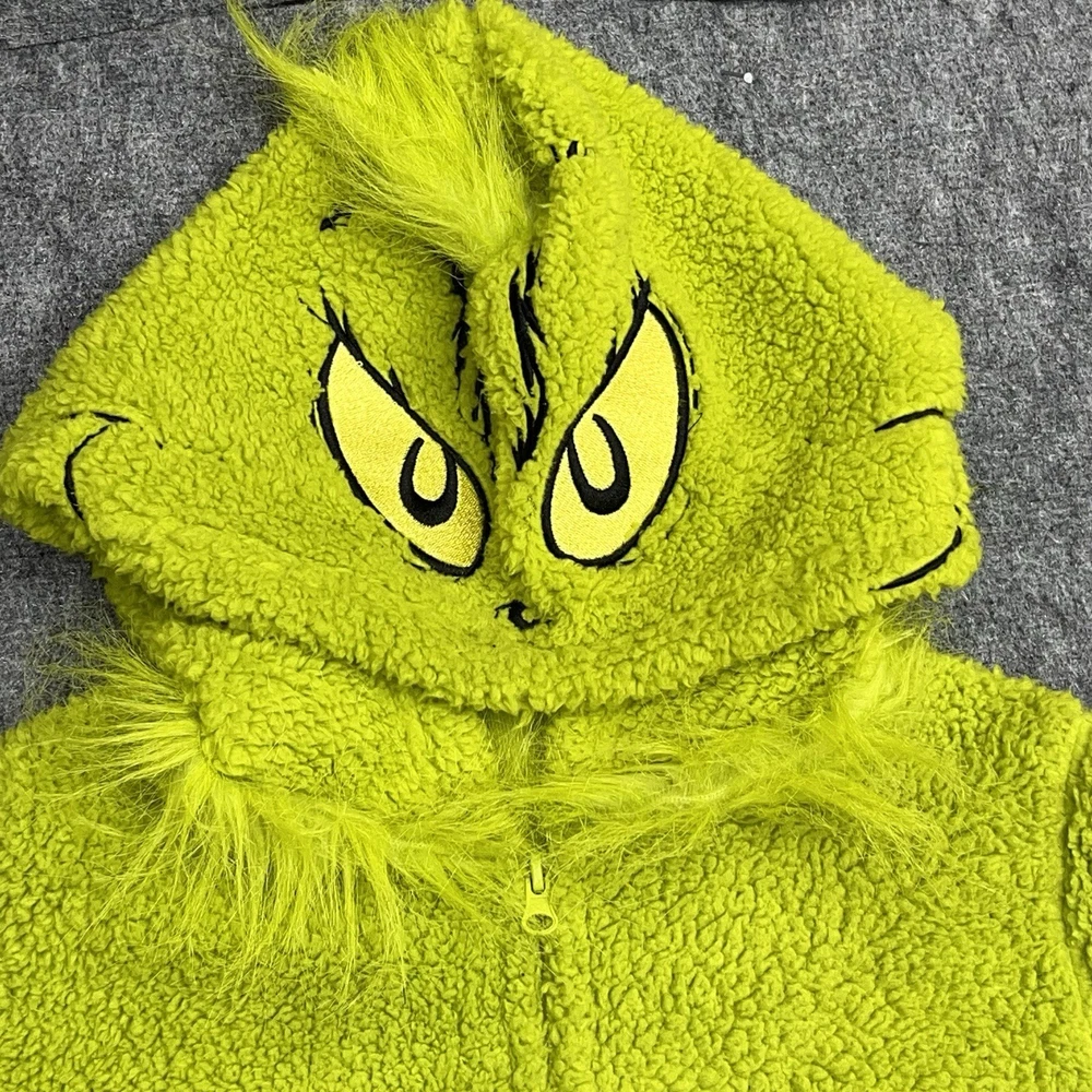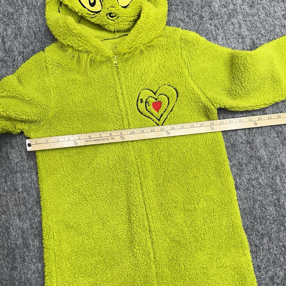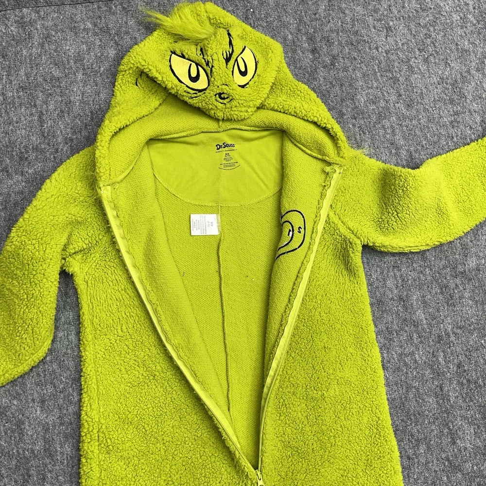 Theme: Christmas, Holiday, Cartoon, TV & Movie Characters Garment Care: Machine Washable Pattern: Solid Color: Green Material: Polyester Sleeve Length: Long Sleeve Closure: Zip Brand: Dr. Seuss Size Type: Regular Fabric Type: Fleece Country/Region of Manufacture: China Accents: Zipper, Fur Trim Season: Fall, Spring, Winter Personalize: No Number of Pieces: 1 Piece Department: Unisex Adults Vintage: No Size: M Type: One Piece Features: Hooded
