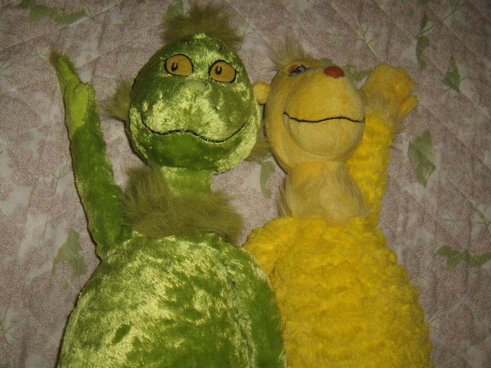 Dr Seuss's Famous The Grinch Who Stole Christmas and his Dr Seuss friend (from Sleep Book) Snoozapalooza Plush cuddly stuffed Classic characters, the Grinch measures 21 inches from tft on head to tip of toes & the Snoozapalooza measures 19 inches from tuft on head to tip of toes, Grinch dated 2010 and Snooze dated 12-02/2013 on ID labels attached (see photos), Both bright colored excellent like-new absolutely clean condition in a non smoker home. Please ask questions before bidding as no refund is offered. Will be carefully packed and shipped in USPS Priority Mail Flat Rate Box that includes insurance, tracking and quick delivery. Before Bidding...Send me your delivery zip code for an alternate shipping USPS cost.