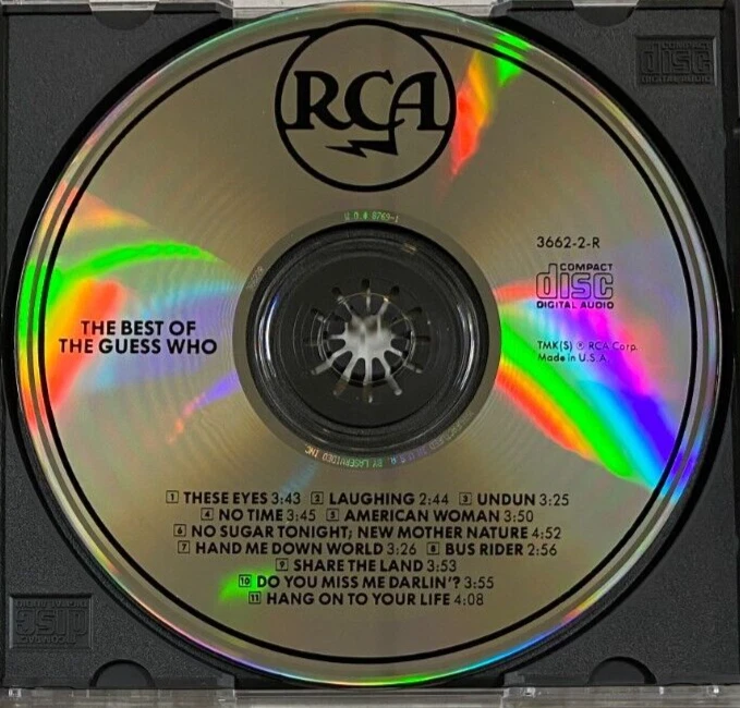 gtin13: 07863536622 Catalogue Number: 3662-2-R Features: Compilation, Import, Remastered Case Type: Jewel Case: Standard UPC: 07863536622 Language: English Edition: Best Of Type: Album Format: CD Release Title: The Best Of The Guess Who Country/Region of Manufacture: United States Case Condition: Near Mint (NM or M-) Inlay Condition: Near Mint (NM or M-) Style: 1960s, 1970s, 1980s, Blues Rock, Classic Rock, Pop Rock, Psychedelic Rock Artist: The Guess Who Record Label: RCA Records CD Grading: Near Mint (NM or M-) Seller Notes: “CD and case are in near mint condition.” Genre: Pop, Psychedelic, Rock