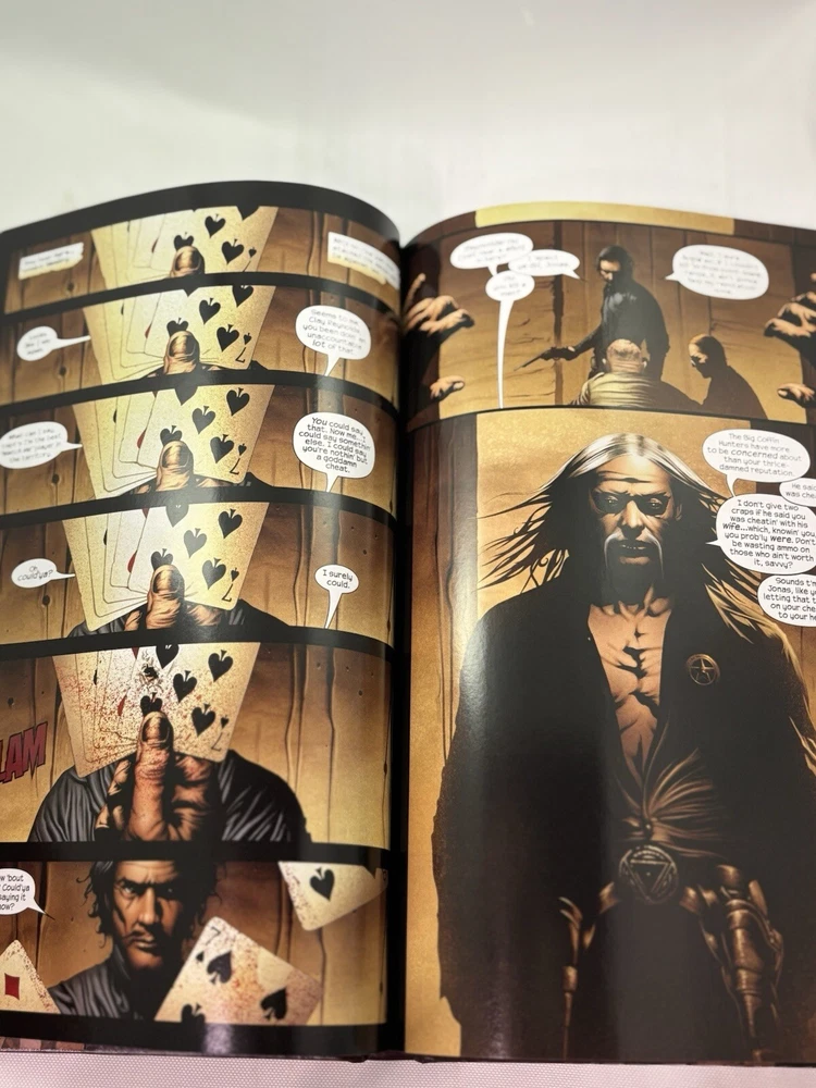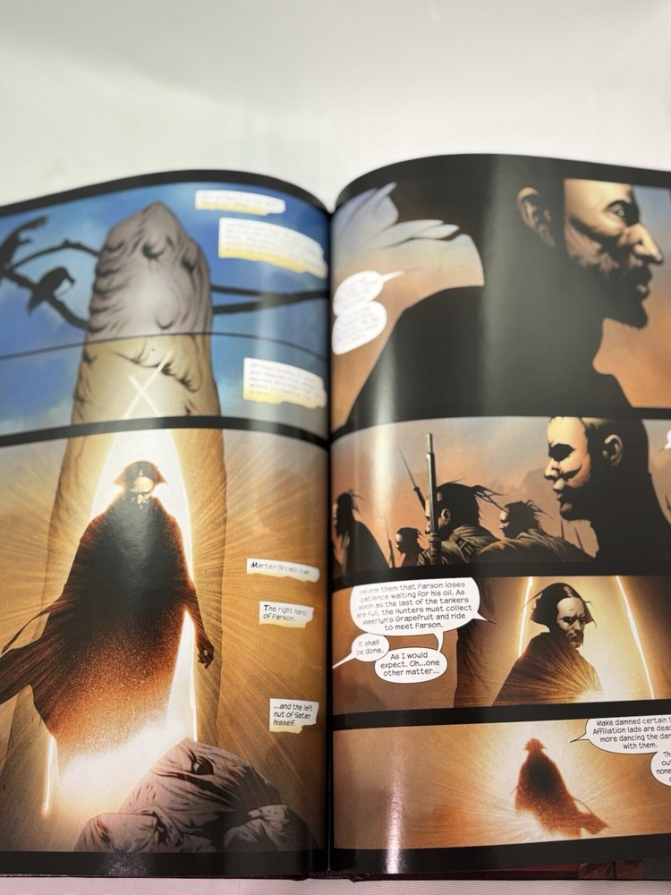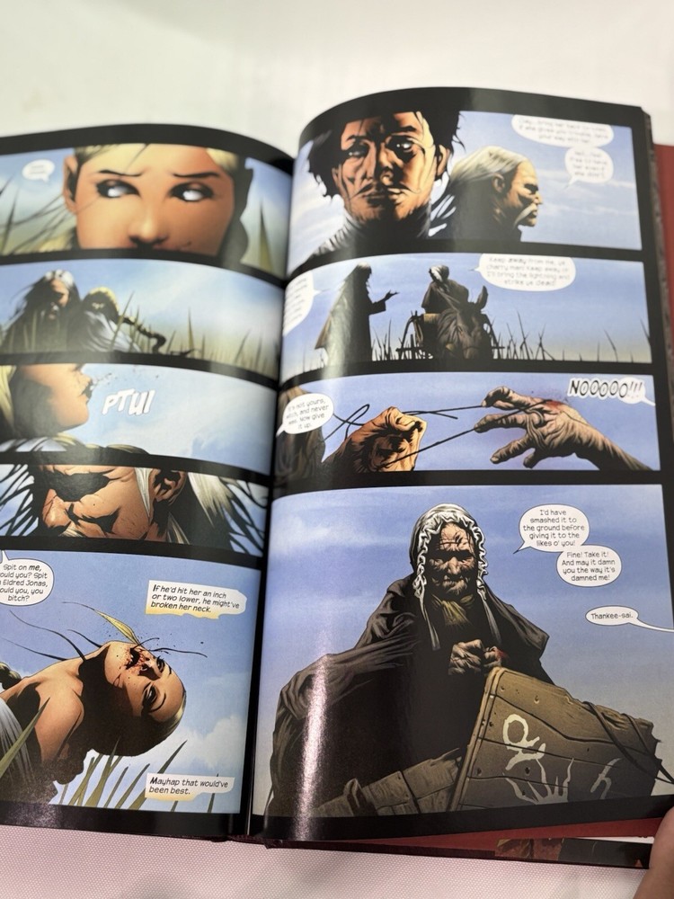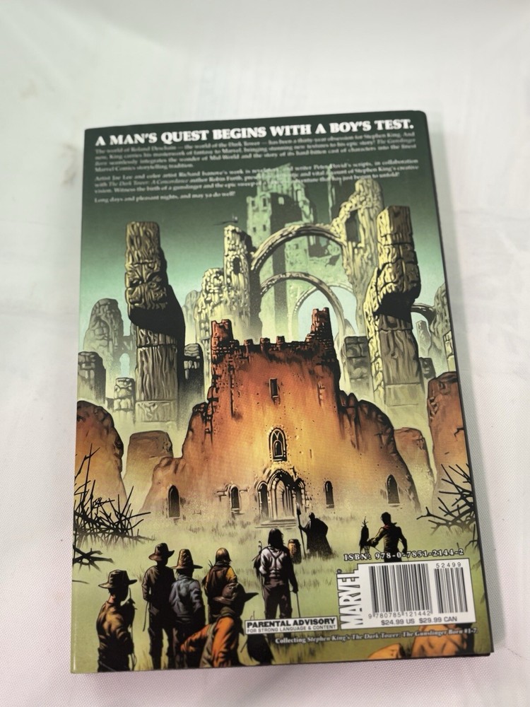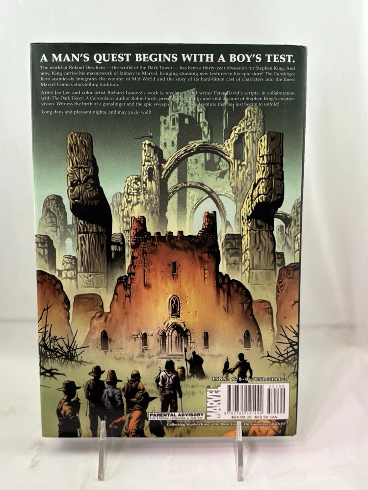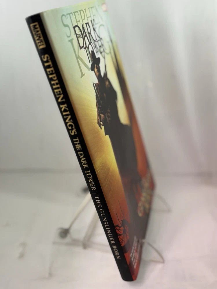 This comic book series, titled "Dark Tower: the Gunslinger Born," was published by Marvel Comics in 2007. It is a modern age comic book that falls under the Western and Fantasy genres. The series features a variety of characters including Cuthbert Allgood, Eldred Jonas, Musty, George Latigo, Alain Johns, Thinny, Jamie Decurry, Sheemie, Clay Reynolds, Aunt Cordelia, Roy Depape, Marten Broadcloak, Thomas Whitman, Gabrielle Deschain, John Farson, Weed-Eater, George Latigo, Rhea Dubativo, Sheriff Avery, Roy Depape, Deputy Eldred Jonas, Mayor Thorin, Roland Deschain, Steven Deschain, Susan Delgado, David (Hawk), Coril Thorin, Dave Hollis, Cort, Renfrew, Marten Broadcloak (Walter of the Black), Sheriff Avery (Death), Eldred Jonas (Death), Mayor Thorin (Death), The Thinny, Roland Deschain, The Crimson King, The Weed-Eater, and Olive Thorin. The series was written and illustrated by a team of artists and writers including Robin Furth, Jae Lee, Peter David, Richard Isanove, and Stephen King. The cover artists