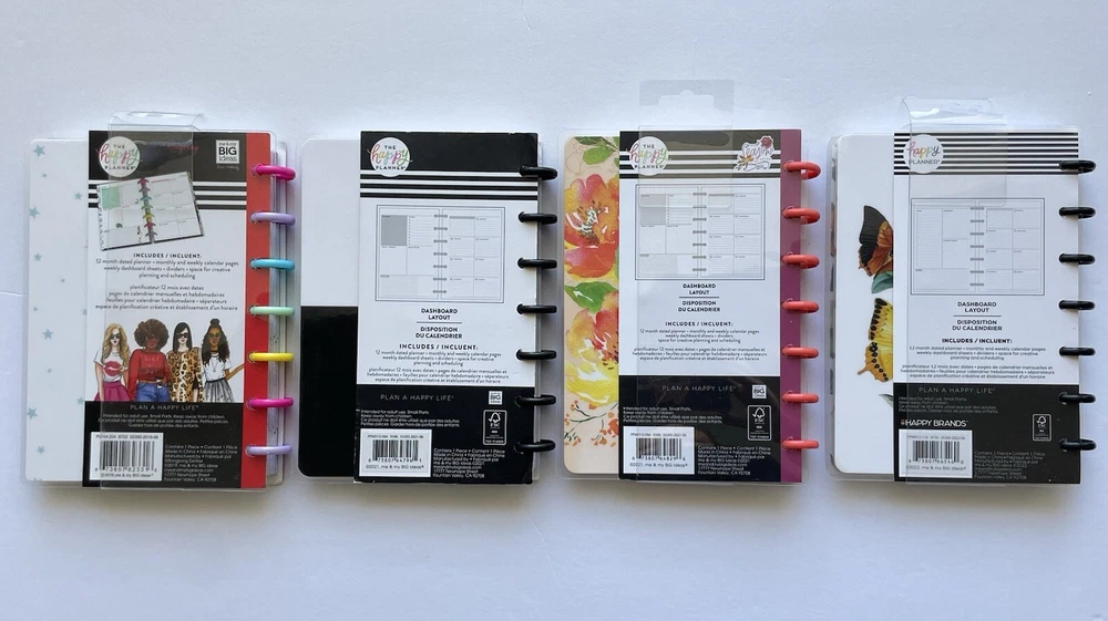 The Happy Planner Mini Dashboard Layout 4 Planners NEW Outdated All 4 planners are dashboard layout and mini size. The Rongrong planner is 2020, the middle two are 2022, and the butterfly one is 2023. From a smoke-free and pet-free home. Will combine shipping by refunding the difference between the shipping amount paid and actual shipping cost.