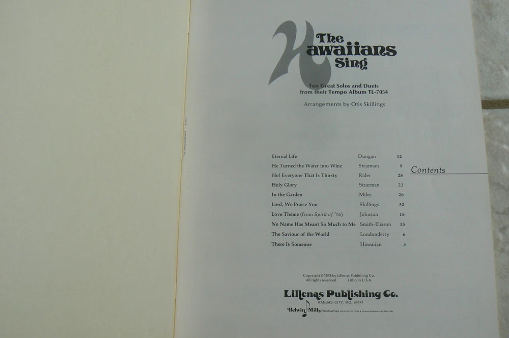 The Hawaiians Sing, Ten Great Solos/Duets,Lillenas Music, Christian 1973 MB-321