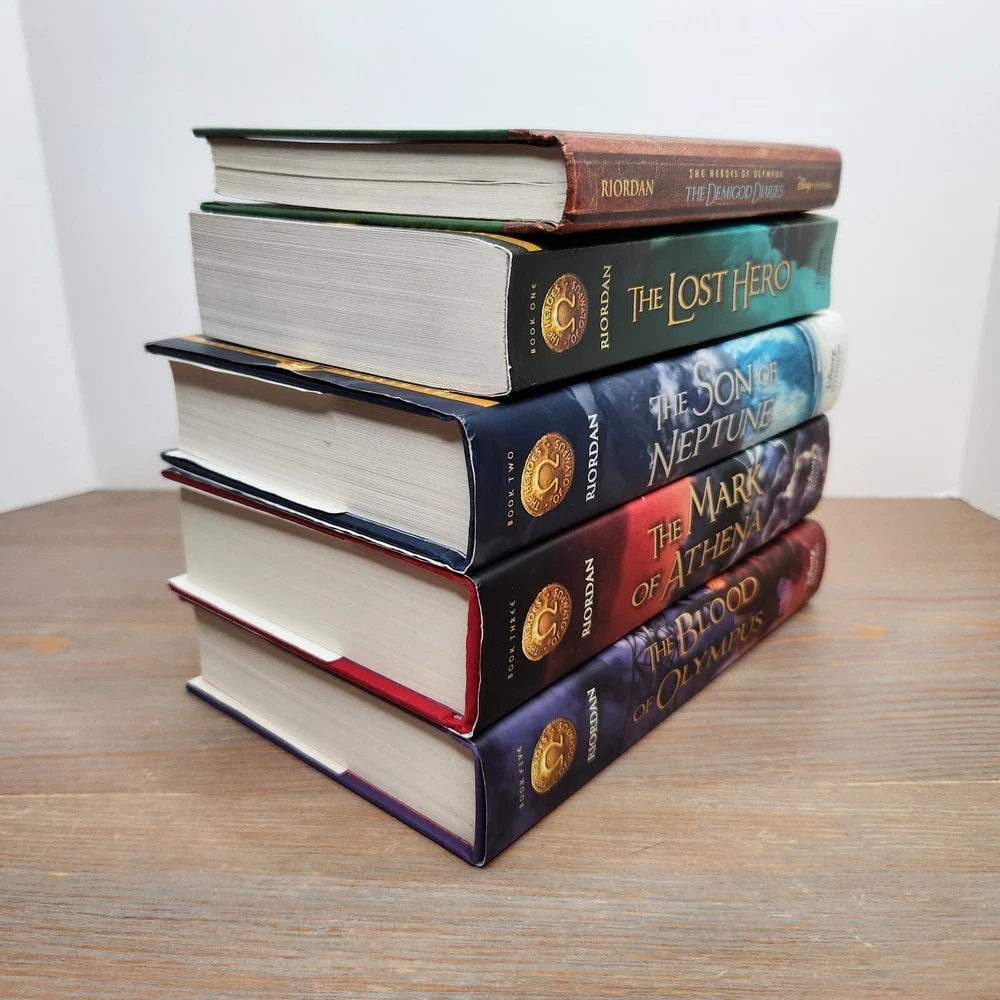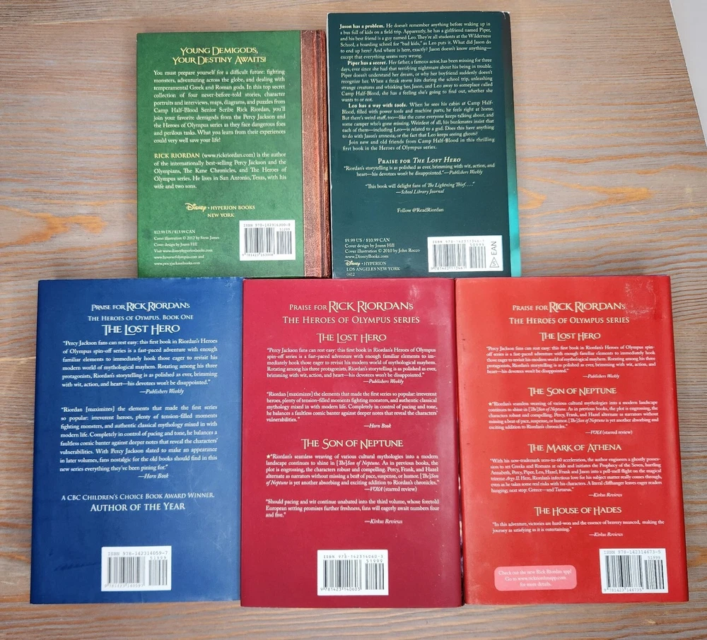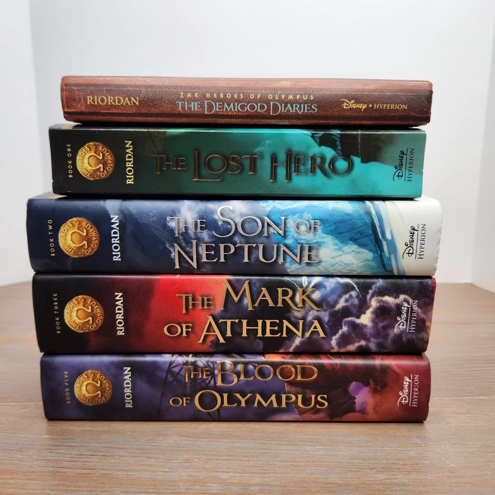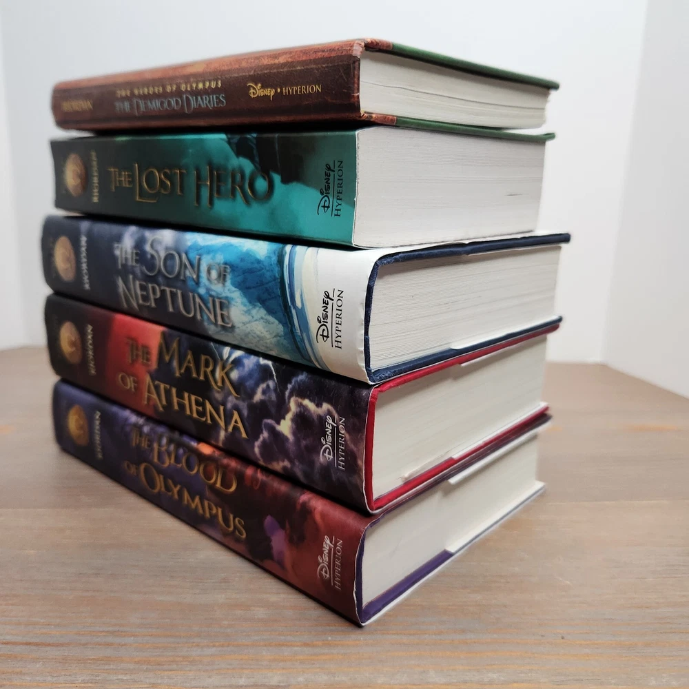 Format: Hardcover Narrative Type: Fiction Item Width: 8.9in Type: Novel Personalized: No Publication Year: 2014 Inscribed: No Ex Libris: No Item Length: 8.8in Publisher: Disney Publishing Worldwide Vintage: No Topic: Legends, Myths, Fables / Greek & Roman, Fantasy & Magic, Action & Adventure / General Book Series: Heroes of Olympus Signed: No Item Weight: 141.9 Oz Intended Audience: Ages 2-3, Ages 9-12, Ages 4-8, Under 2 Years Book Title: Heros of Olympus Personalize: No Original Language: English Genre: Juvenile Fiction Author: Rick Riordan Language: English Item Height: 6in Country/Region of Manufacture: United States Number of Pages: 2404 Pages Edition: First Edition Features: Dust Jacket Era: 2010s