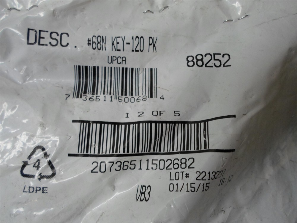 This item is: The Hillman Group #68 Schlage Blank Lock Key 88252: Pack of 120 keys Sales tax will be added to items shipping to locations in Kansas. Includes only what is shown in the picture. __________Warehouse Location: ____box 83______________________________ _____________________________________________________________________ _____________________________________________________________________ _____________________________________________________________________ By bidding and or purchasing this at this auction you (the buyer) agree to the following terms and conditions: 1. All items are sold “AS IS” No warranty or liability is expressed or implied. 2. The buyer agrees that: All items are shipped without insurance. It is the buyers responsibility to let us know if they want insurance on the item. Insurance cost is $2.00 for every $50 insured, in $50 increments. The buyer agrees that if no insurance is purchased and the item is not received or received damaged that no claim shall be brought against the seller. 3. We only ship to PayPal confirmed street addresses, no exceptions. No PO Boxes, APO, FPO or similar addresses. 4. The buyer agrees that the item fits the buyers purpose prior to bidding. 5. The buyer agrees that once we have delivered and shipped the item at USPS, UPS or FEDEX the item(s) delivery, handling, product damage, and non-delivery is the responsibility of the buyer. The buyer agrees to indemnify and hold harmless the seller from any claims arising out of any conditions after the item has been delivered to the place of shipment. 6. We only ship to the continental United States. The shipping price quoted is for the continental United States Only. All other locations will be charged extra. Out of county buyers agree to pay any additional charges that we ask them to pay including but not limited to import duties, shipping costs, packaging costs, time costs, and other costs. 7. All our items are wholesale, overstock, unclaimed, foreclosure purchase or salvage goods. Most boxes have been opened for inspection and photos. If items are listed as new they may not come with original packaging. 8. The buyer agrees there will be no refunds for any reason. 9. Shipping to the continental US only. Payment must be received within 2 calendar days of auction close.