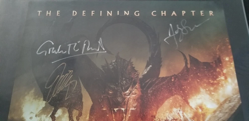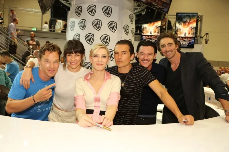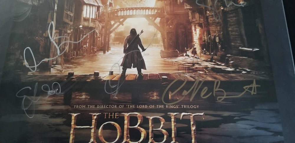 The Hobbit CAST SIGNED x9 POSTER SDCC COMIC Bloom Blanchett Cumberbatch Lilly ++. This poster was signed at San Diego Comic Con 2014 at the WB Booth. You had to win a wristband to attend the signing and that wristband will be included with the poster. It is signed by the following cast members Benedict Cumberbatch, Orlando Bloom, Cate Blanchett, Evangeline Lilly, Lee Pace, Luke Evans, Andy Serkis, Elijah Wood, and Graham McTavish. This poster is in very good condition. It is a 12x18 poster. Buyer to pay $10.00 post USA. Thanks for looking.