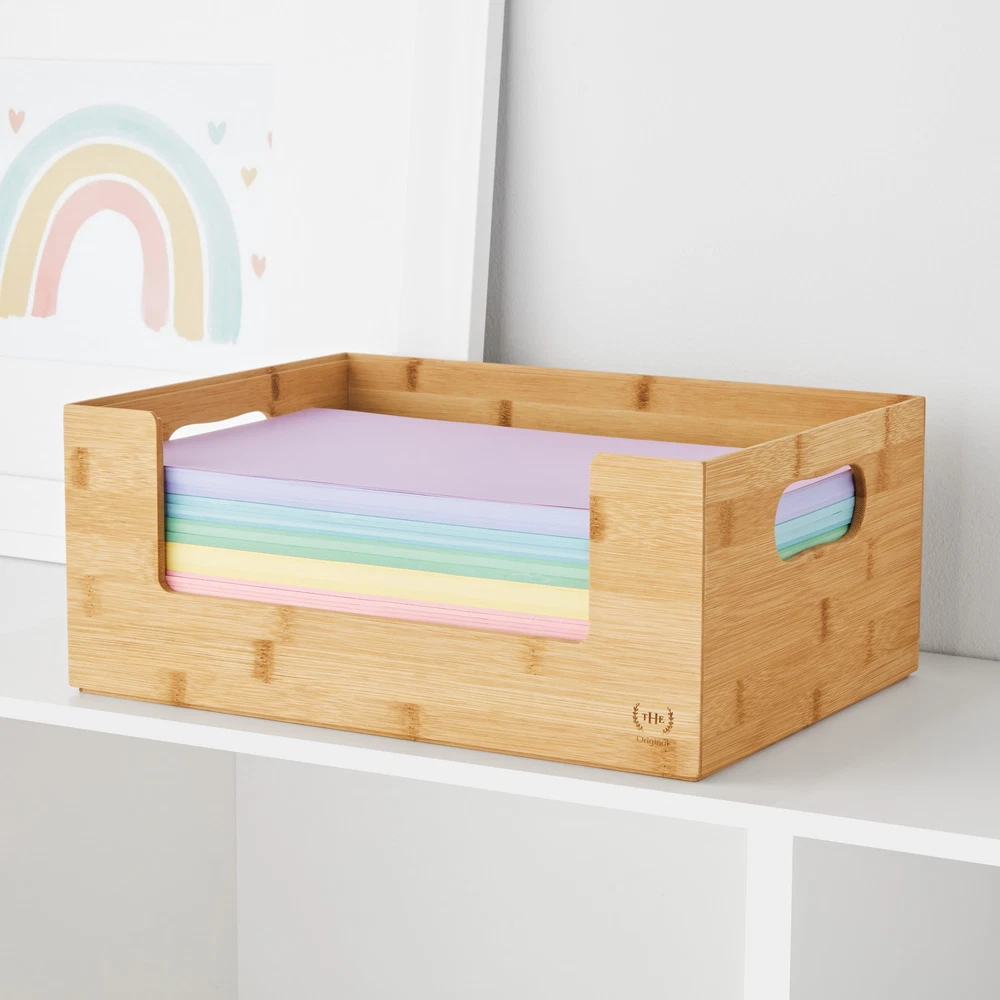 The Home Edit Bamboo Open Front medium 2-piece storage bins are perfect to help you kick off your next organizing adventure. The Home Edit Bamboo Open Front Medium Brown Storage Bins are perfect for organizing the Pantry, Home Office, Bathroom and More. Here at The Home Edit we believe that any space can function efficiently while looking beautiful with smart systems on your side. Great gift for Adults! Included are 2 medium size Bamboo Open Front bins (10.5" x 14.5" x 6") As seen on Netflix! Stackable Bin Mix and match with other The Home Edit Storage Solutions 2 open Front brown bins 10.5" x 14.5" x 6" Great for Kitchen, Pantry, Bathroom, Bedroom, and More! Adults, children, teenagers