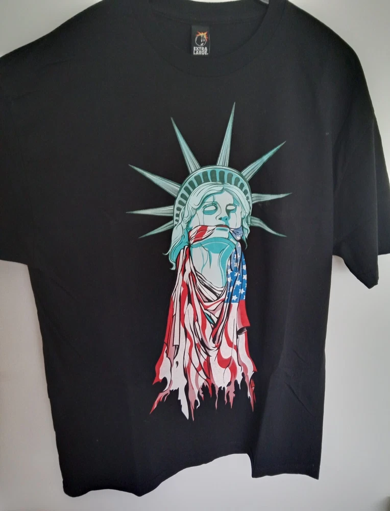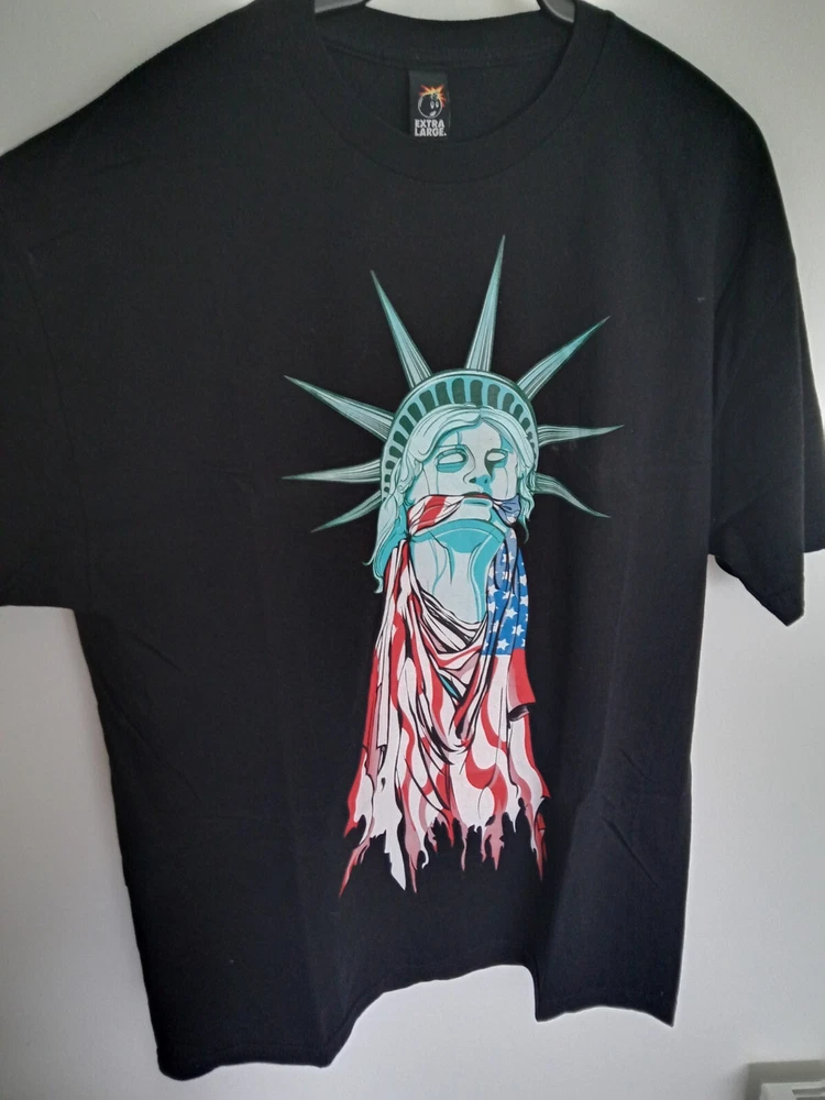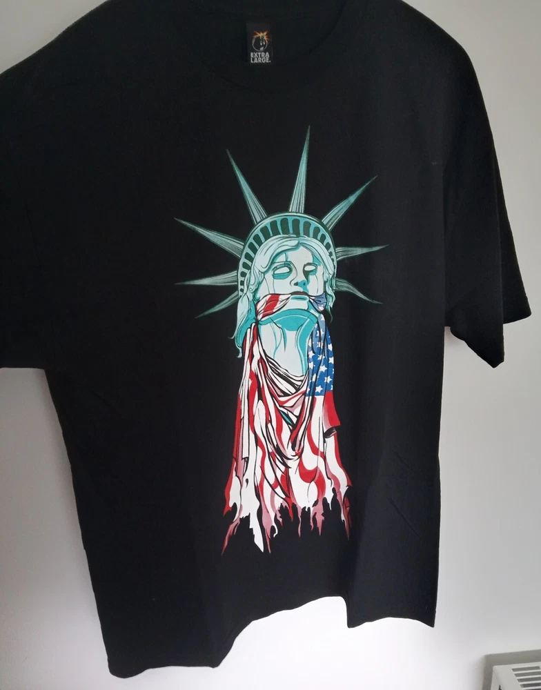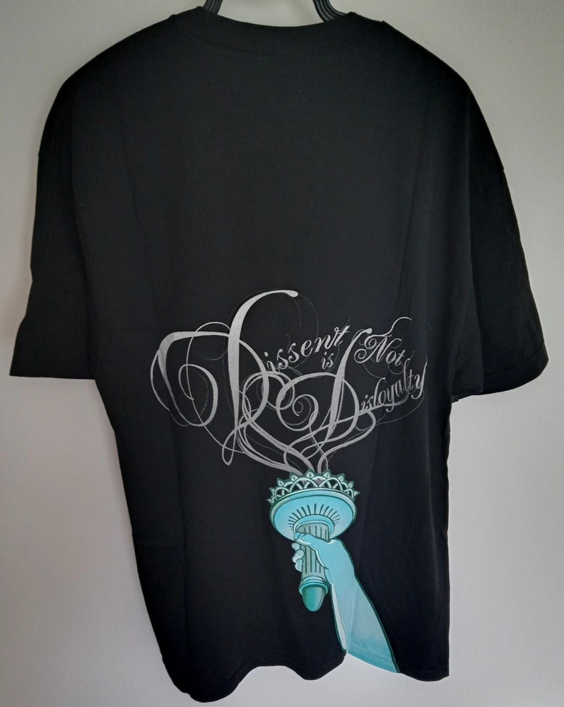 Statue of Liberty T-Shirt Like new. Worn once, washed once. See pics. Men's size USA X-Large (slightly larger than a UK X-Large). Back print reads "Dissent is Not Disloyalty". Exact measurements to follow. Official The Hundreds product. Made in the USA.