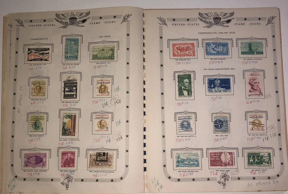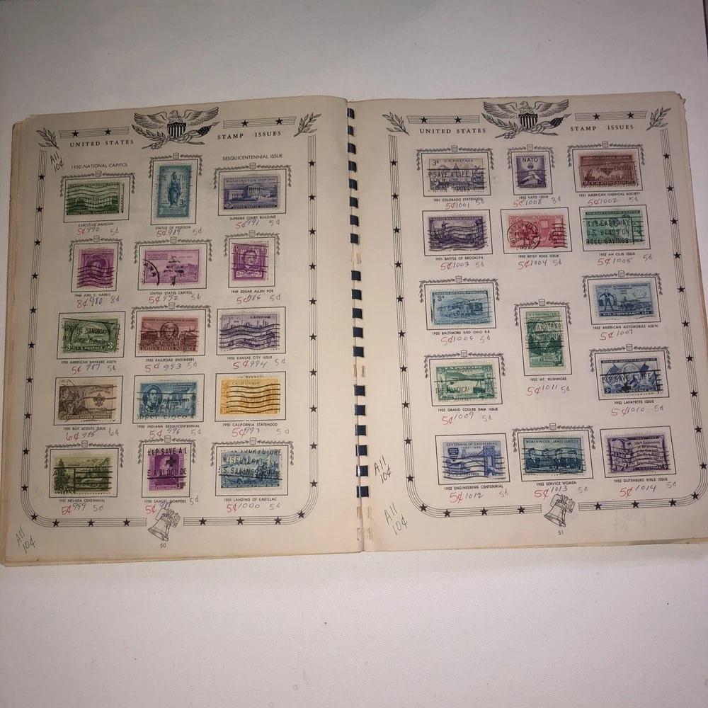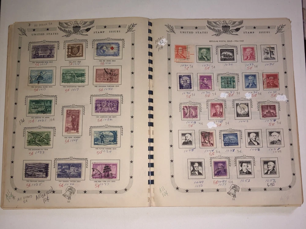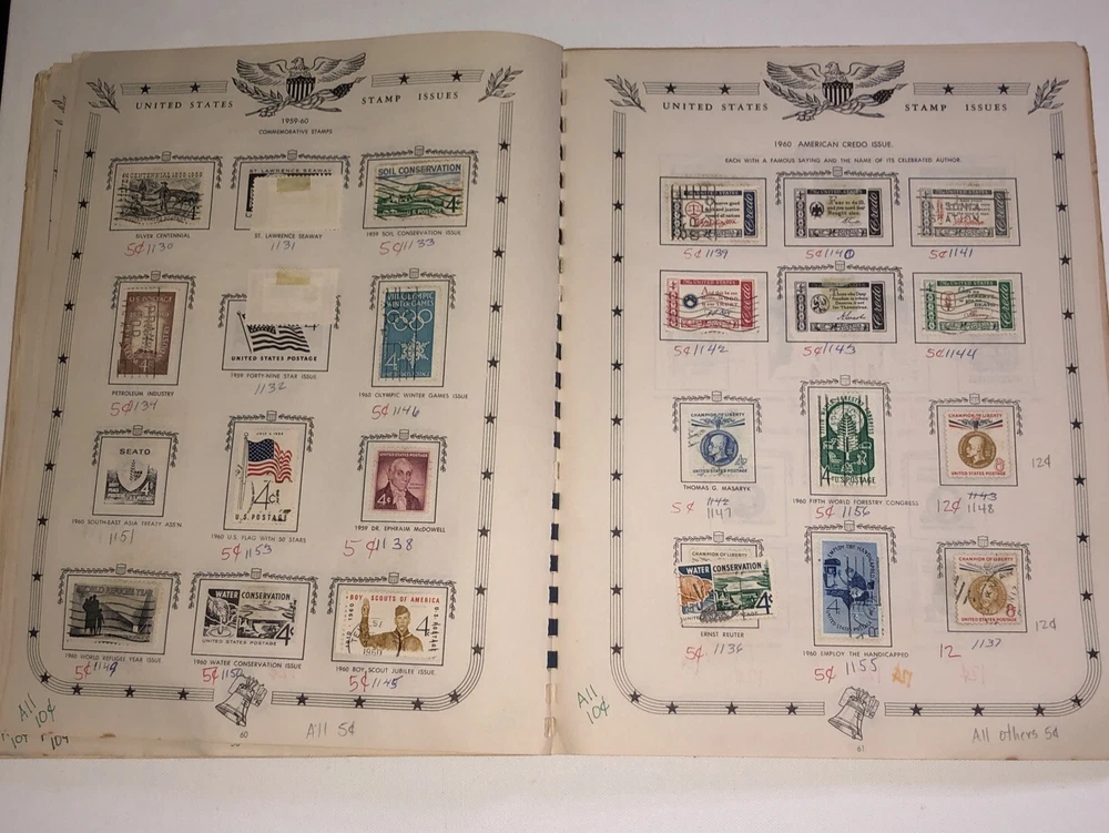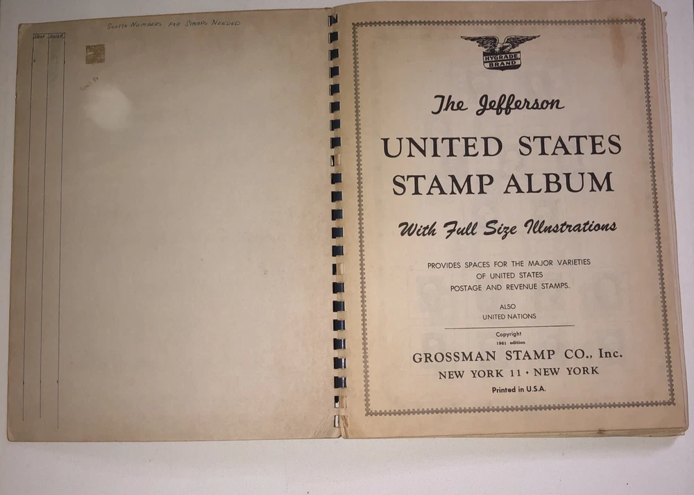 This great item belonged to my father who was 13 years old back in 1961 when he received this item and starting collecting stamps. He wrote his name on the back cover. This Jefferson United States Stamp Album from 1961 Edition is a must-have for any stamp collector. The album contains a variety of stamps that were manufactured in the United States. The quality of the stamps is used and they are ungraded. The album is uncertified and is a great addition to any collection. The album is perfect for collectors who are interested in United States stamps from the 1901-Now era. It is a great way to add to your collection and organize your stamps. The album was manufactured in the United States and is a piece of history that any collector would be proud to own.