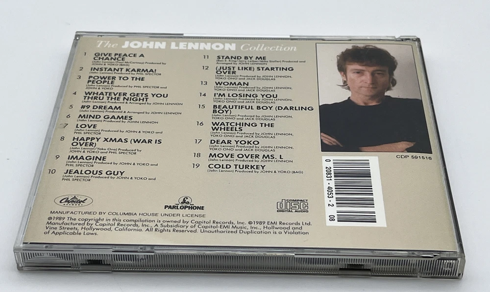The John Lennon Collection Audio CD by John Lennon is a must-have for all pop, rock, and oldies music fans. This audio CD features some of John Lennon's greatest hits and is in very good (VG) CD grading. The CD comes in a very good (VG) case condition and inlay condition, making it a perfect addition to any music collection. This audio CD is released by Collectables under the title "The John Lennon Collection." It includes some of his most popular tracks, all in great quality. So if you're a fan of John Lennon or just love great music, make sure to add this audio CD to your collection today!