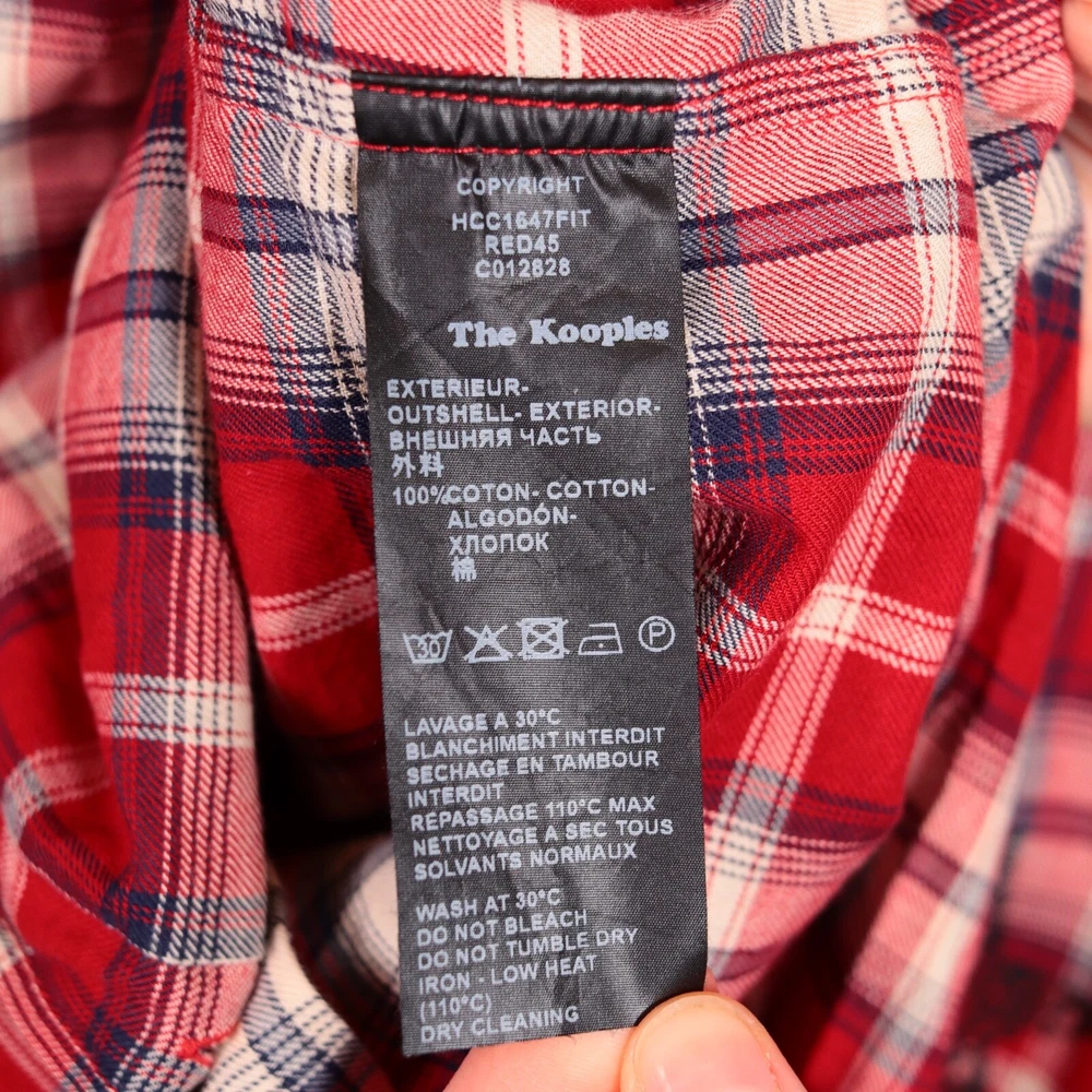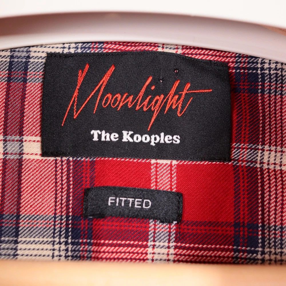 The Kooples Moonlight Plaid Fitted Button Up Shirt Star Print Sleeves Size Small The Kooples - Moonlight collaboration series Button up fitted shirt in a red, white and black plaid pattern Featuring a 3 star print design on each sleeve Branded buttons TK branded piece between the front and back hems 100% cotton Men’s size small Please note: the fifth button down is unfortunately missing, and there are no spare buttons so I have not replaced it. I would suggest using the top button to replace it, and having no top button or an alternative one. MEASUREMENTS (Flatlay, approx): -Chest (pit to pit): 20.5 inches / 52 cm -Length: 25.75 inches / 65 cm -Sleeve (from underarm): 19.75 inches / 50.5 cm Most of our items are sent in 100% bio-degradable, recyclable mailing bags, or sometimes re-used packaging, to help the planet. UK shipping is Royal Mail Tracked 48 so you can keep up with the progress. Any questions, please ask - I normally reply within a few hours. Also, happy to consider offers.