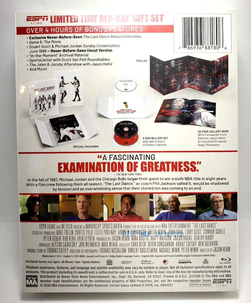 The Last Dance: A Ten-Part Documentary Event (3-Blu-ray, 2020) Chicago Bulls New Item is brand new and still sealed in original factory packaging. Do note the plastic wrapping has a few small tears on the front part, however it’s still brand new and sealed! Please see pictures for complete item details/condition. Thanks for looking and please see my store for more Blu-ray/ESPN and various other items!