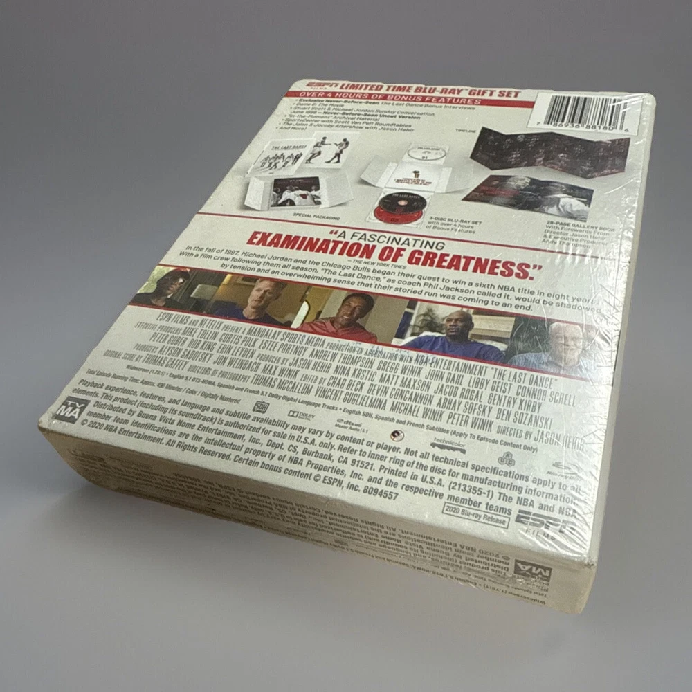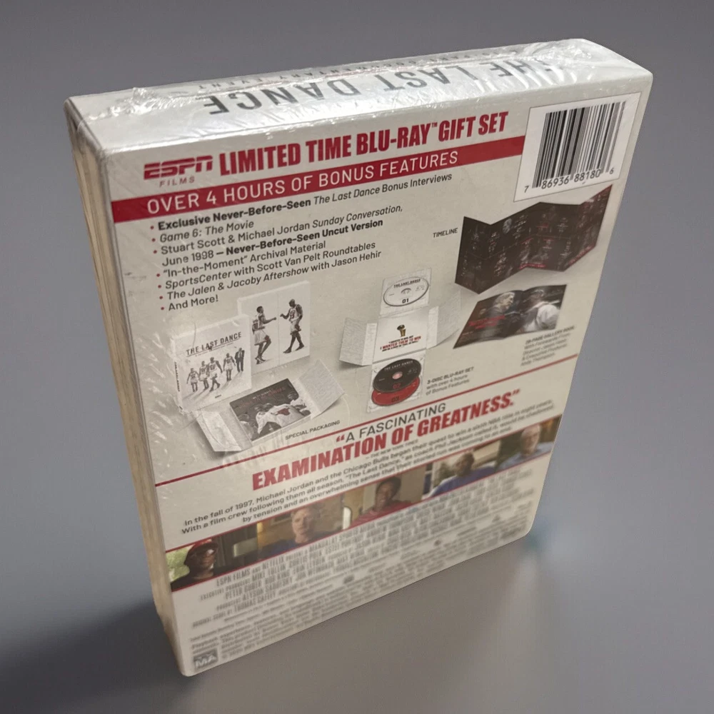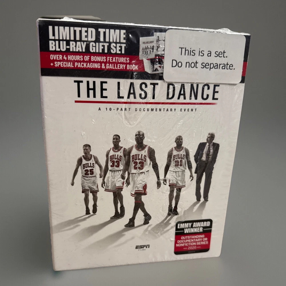 The Last Dance The Emmy Award winning 10-part documentary about Michael Jordan and the Chicago Bulls 3-disc Blu-ray OOP LIMITED EDITION This is out of print. Brand New, Sealed From a smoke-free home. There is a slight tear in the outer packaging (as seen in photo), which is how it arrived when purchased unfortunately.