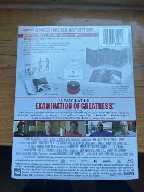 Genre:DocumentaryUPC:0786936881806Language:EnglishActor:Scottie Pippen, Phil Jackson, David Aldridge, Michael Jordan, Steve KerrMovie/TV Title:The Last Dance: a Ten-Part Documentary EventSeason:Complete Series Box SetSub-Genre:Biography, BasketballCase Type:Cardboard SleeveFormat:Blu-ray Discgtin13:0786936881806Director:Jason HehirRegion Code:Blu-ray: Region FreeEdition:Limited Edition, Box Set
