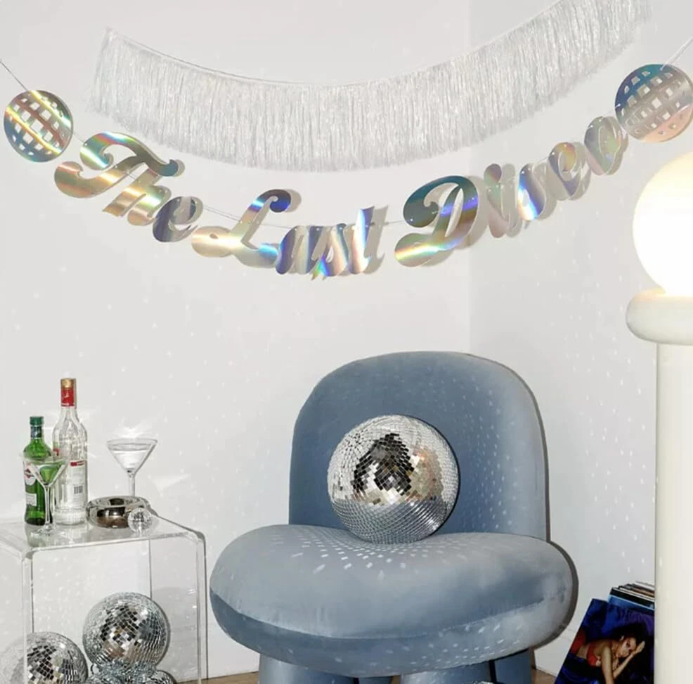 Return Policy Fast Delivery Trusted seller The Last Disco Fringe Banner - Iridescent, 5 Ft. | Bachelorette Party Decoration, Groovy Bach, Bridesmaid Favor, Bride to Be Gift, 70s Bridal Shower Supplies, Photobooth Backdrop Product Description Disco Fever: Our iridescent fringe and The Last Disco banner are the party addition you've been looking for + a d hit! Foil Details: Each banner features an iridescent paper finish with letters that spell out "The Last Disco" - think super fun + shiny! Fringe For Days: Our banner is layered with a 5' iridescent fringe. The finish feels very luxe + the perfect compliment to your event :) The Perfect Party Accessory: One size fits all! Perfect for any bride to be! Ready To Party: This banner is pre-strung on one string and ready for action! Size: Each set comes with one foil banner and one fringe banner that each span 5 feet total! Shipping Returns Payment Shipping Shipping is FREE to all addresses other than APO/PO boxes in the lower 48 states. All our stock ships from US-based warehouses. Shipped via USPS or UPS (depending on location and package weight) Unless stated otherwise, all orders will ship within 24-72 hours of your payment being processed. Check our feedback to see the great reviews of FAST shipping we offer. Returns Seller does not accept returns Payment We currently accept payment via eBay managed payments only. Once payment is cleared, we will dispatch your shipment within 1-3 business days. Please refer to the "Shipping" tab for more information regarding shipping speed to your destination.