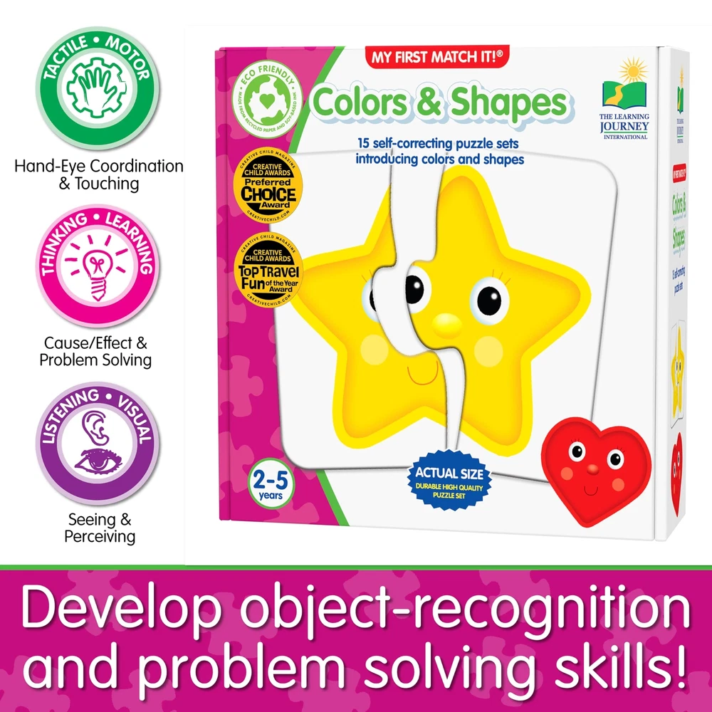 The Learning Journey: My First Match It - Colors and Shapes- 15 Piece Self-Correcting Matching Puzzles - First Learning Toys for Toddlers 2-5 - Award Winning Toys A FUN INTRODUCTION TO PUZZLES – These two-piece puzzles are an ideal introduction to jigsaw puzzles; keeping it fun and simple so that children from the age of 2 can have fun and learn. My First Match It! puzzles are designed to provide the right level of challenge; you can begin by offering just two corresponding pieces and then increase the challenge level by offering more pieces to choose from as they master it. INTRODUCE KEY PROBLEM-SOLVING SKILLS – These puzzles are an ideal way to help your child develop a basic understanding of how to solve simple problems and the colorful illustrations provide an instant reward for every problem solved! IMPROVE CONCENTRATION & FOCUS – Puzzles are a great way of gradually improving your child’s ability to focus on a task. The self-correcting puzzles mean that the child quickly understands that only one piece will fit with any other and this is a big motivation to seek it out, keeping concentration for longer. ENCOURAGE EARLY MATHEMATICS SKILLS – The puzzle introduces the idea of shapes and encourages children to note the differences between different shapes. This is a key foundation for building further mathematical understanding as your child develops. BOOST SELF-ESTEEM & CONFIDENCE – Putting the puzzle together successfully provides a big boost to a child’s confidence, especially when rewarded with praise! The puzzles are self-correcting, so your child cannot get it ‘wrong’ by slotting together two pieces that don’t match. No disappointment – every effort is rewarded. This colorful set of 15 themed puzzle cards provides children with an excellent introduction to basic colors and shapes. Each card features a picture of either a color or a shape. Simply match the correct pieces together to complete the puzzle. The puzzles are self-correcting as no two puzzle cuts are the same. Shipping We offer FREE shipping on all orders! We use a selection of shipping services such as UPS, FedEx, USPS etc. We only ship to the lower 48 states, no APO/FPO addresses or PO Boxes allowed. Local pickups and combined shipping options are not provided at this time. Return You can return a product for up to 30 days from the date you purchased it. Any product you return must be in the same condition you received it and in the original packaging. Please keep the receipt. Payment We accept payment by any of the following methods: PayPal Please pay as soon as possible after winning an auction, as that will allow us to post your item to you sooner! Feedback Customer satisfaction is very important to us. If you have any problem with your order, please contact us and we will do our best to make you satisfied. Contact Us If you have any queries, please contact us via ebay. We usually respond within 24 hours on weekdays. Please visit our eBay store to check out other items for sale! Thank you for shopping at our store.