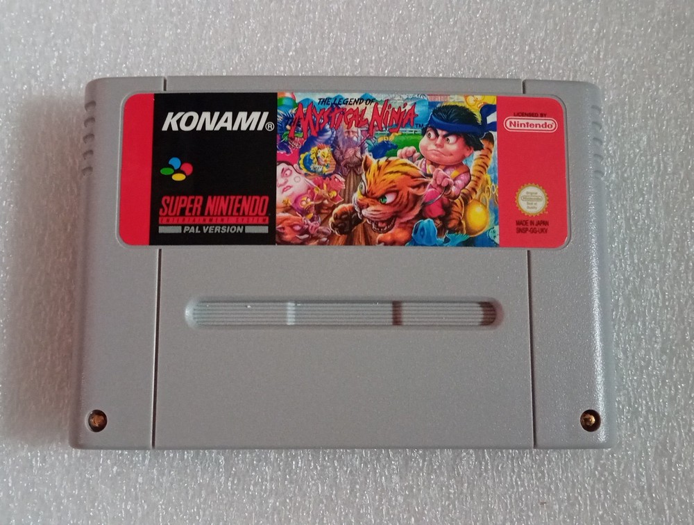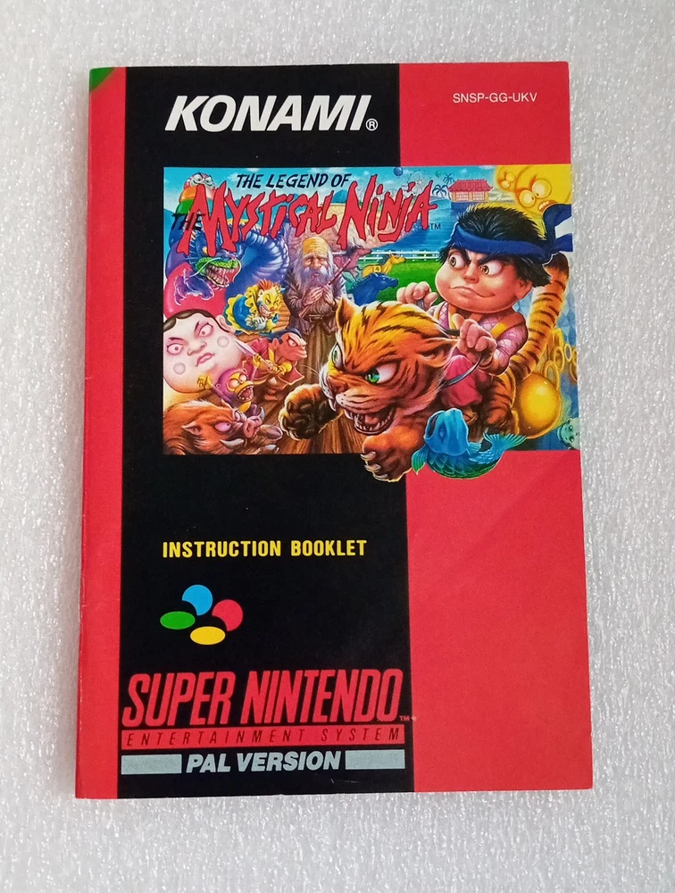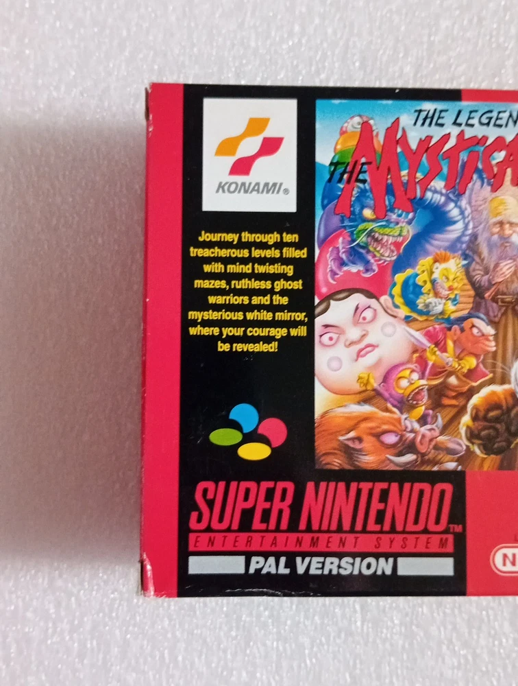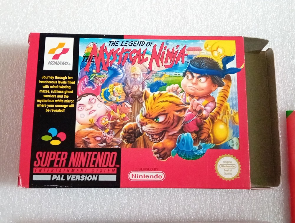 Mystical ninja for super nintendo. SNES PAL still in very good shape and condition. It has a small part ripped on one opening flap. Boxed with insert, cartridge and manual. Please see pictures for conditions.