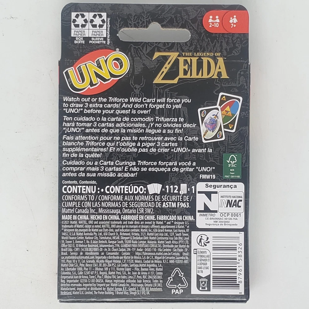 Language: English Brand: Mattel Games Title: Mattel Games UNO the Legend of Zelda Card Game for Family Night w Item Length: 299mm Item Height: 50mm Theme: Game Item Width: 299mm gtin13: 0887961583267 Age Level: 7 years and up Release Date: 07/15/2023 Min. Number of Players: 10 UPC: 0887961583267 Item Weight: 5.9 ouncesg Type: Dedicated Deck Card Games Material: Cardstock Game Type: Family Game