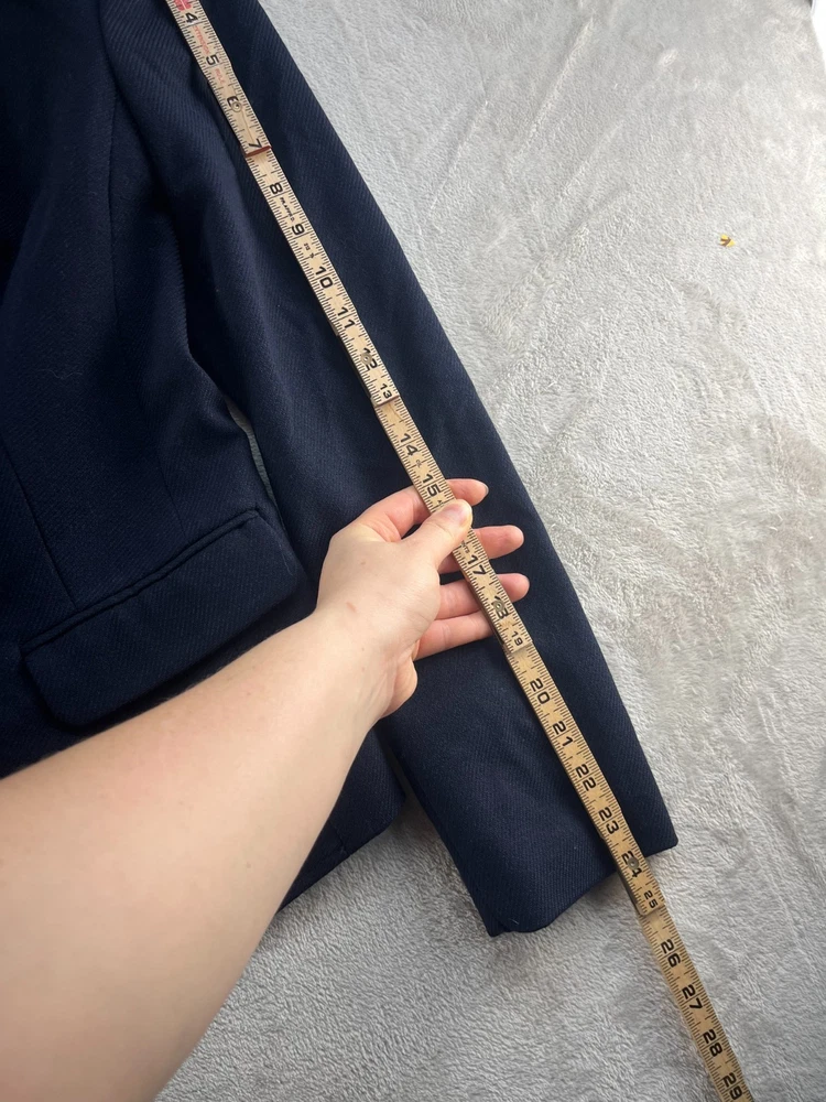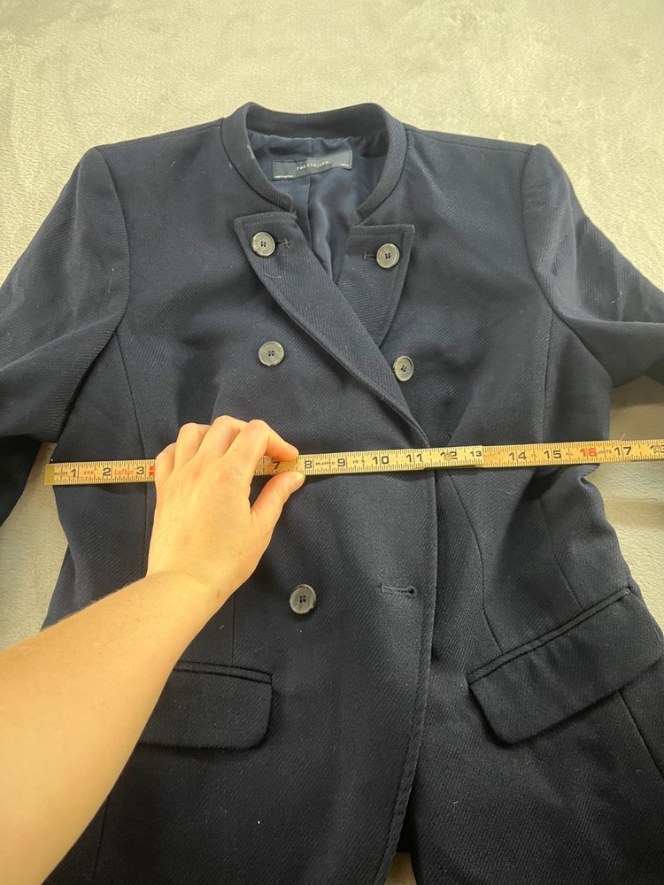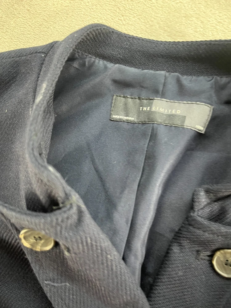 This limited blazer is a stylish and versatile piece for women in size medium. Made from a textured blue fabric, this button-up blazer is perfect for both casual and business occasions. The three-button sleeve and notch lapel style add a classic touch to this modern blazer. The lined interior and 100% polyester lining ensure comfort and style during the winter, fall, and spring seasons. This one-piece blazer from The Limited is a timeless wardrobe essential for any professional or fashionable woman.