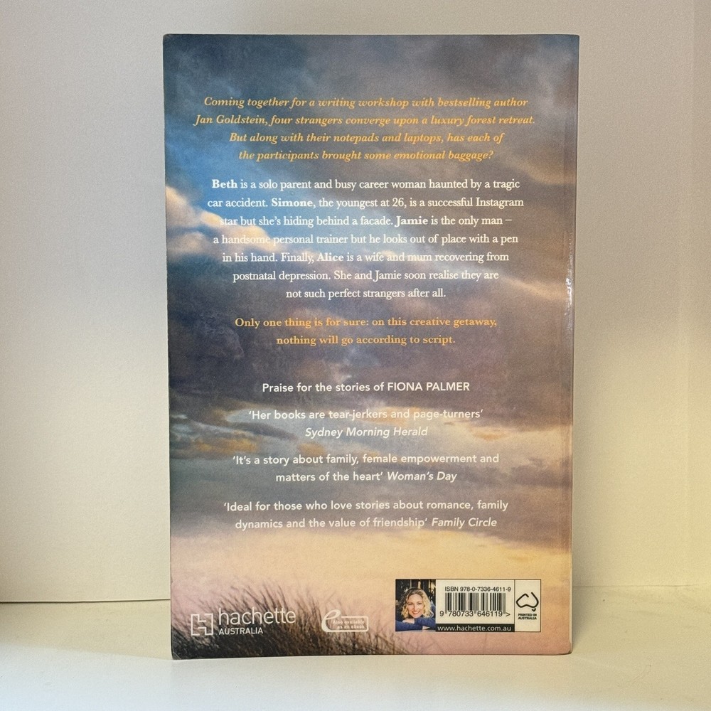 Every book sold with a FREE bookmark. Stamped and marked with withdraw signs from the library. No damage, no missing or damaged pages. Spine may show signs of wear,some books may show signs of antiquity, evident in the yellowing of its pages. Synopsis: Four perfect strangers. Three days. Can one weekend away change your life? The unputdownable new drama by one of Australia's most beloved storytellers Coming together for a writing workshop with bestselling author Jan Goldstein, four strangers converge upon a luxury forest retreat. But along with their notepads and laptops, each of the participants has brought some emotional baggage. Beth is a solo parent and busy career woman haunted by a tragic car accident. Simone, the youngest at 26, is a successful Instagram star but she's hiding behind a facade. Jamie is the only man. He's a handsome personal trainer - but he looks out of place with a pen in his hand. Finally, Alice is a wife and mum recovering from post-natal depression. She and Jamie soon realise they are not such perfect strangers after all. Only one thing is for sure: on this creative getaway, nothing will go according to script. Praise for Fiona Palmer: 'There's an honesty to Palmer's characters that transports you into the heart of their worlds' Australian Women's Weekly 'It's a story about family, female empowerment and matters of the heart' Woman's Day 'Her books are tear-jerkers and page-turners' Sydney Morning Herald 'Fiona Palmer just keeps getting better' RACHAEL JOHNS 'Heartbreak, love and sibling relationships' New Idea