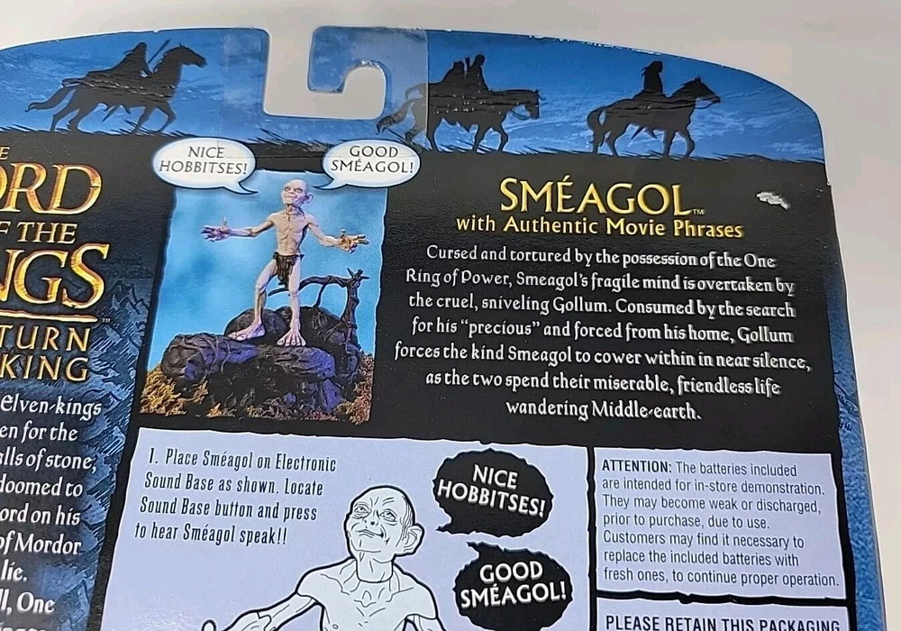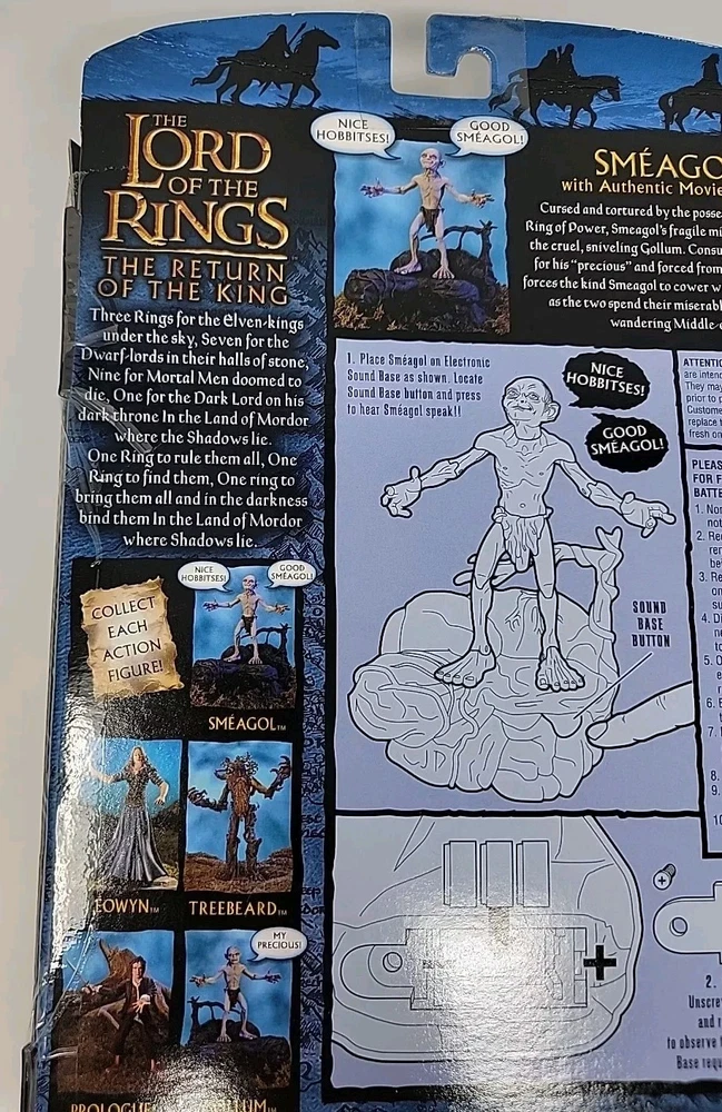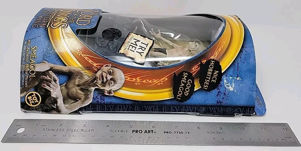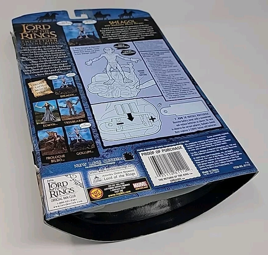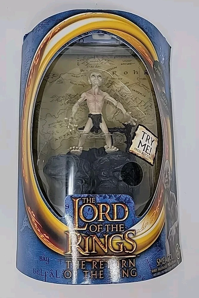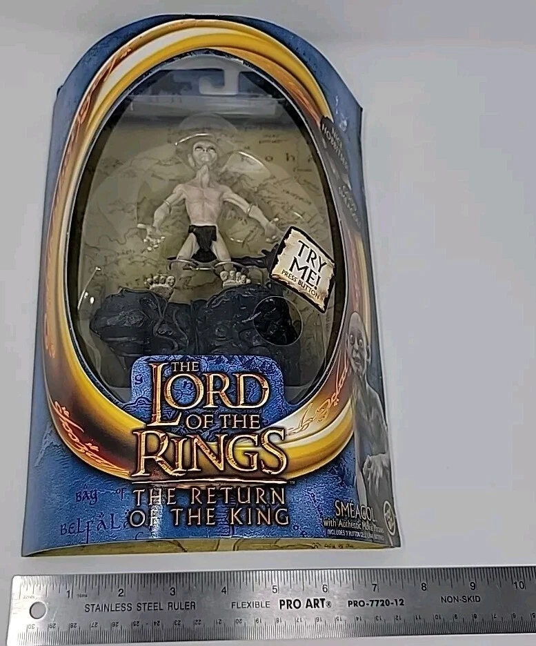 The Lord of the Rings - The Return of the King Sméagol Action Figure by ToyBiz from 2003 is a 1:12 scale collectible based on the character Smeagol from the movie. It includes a Ring accessory and is part of The Lord of the Rings franchise. It features the artist Lorde and was manufactured in the 2000-2009 time period.