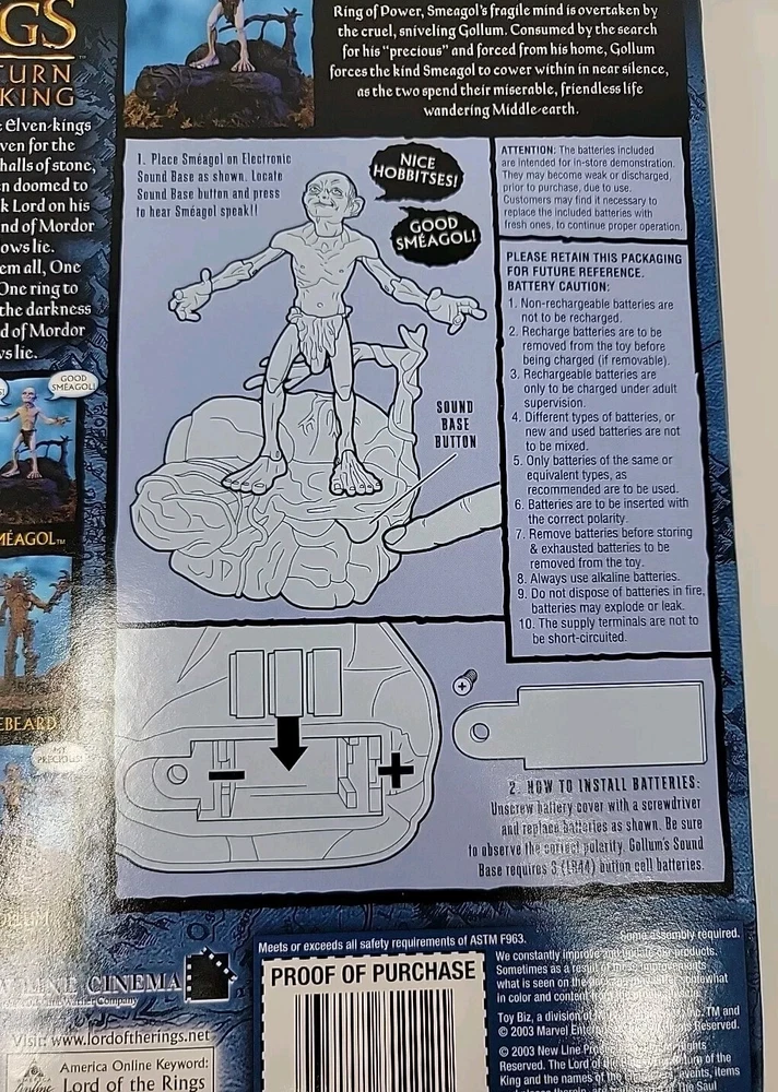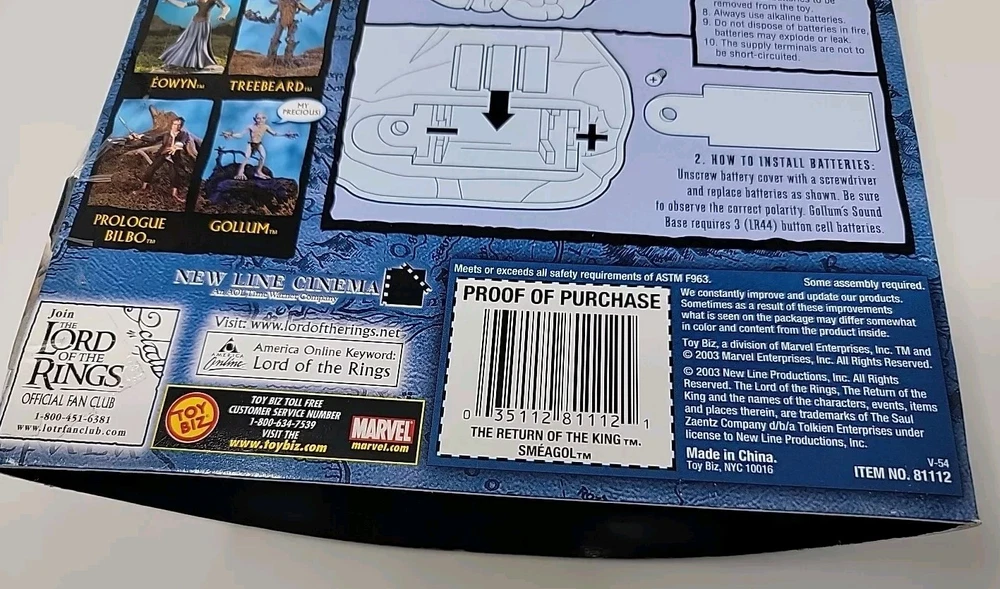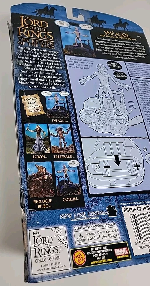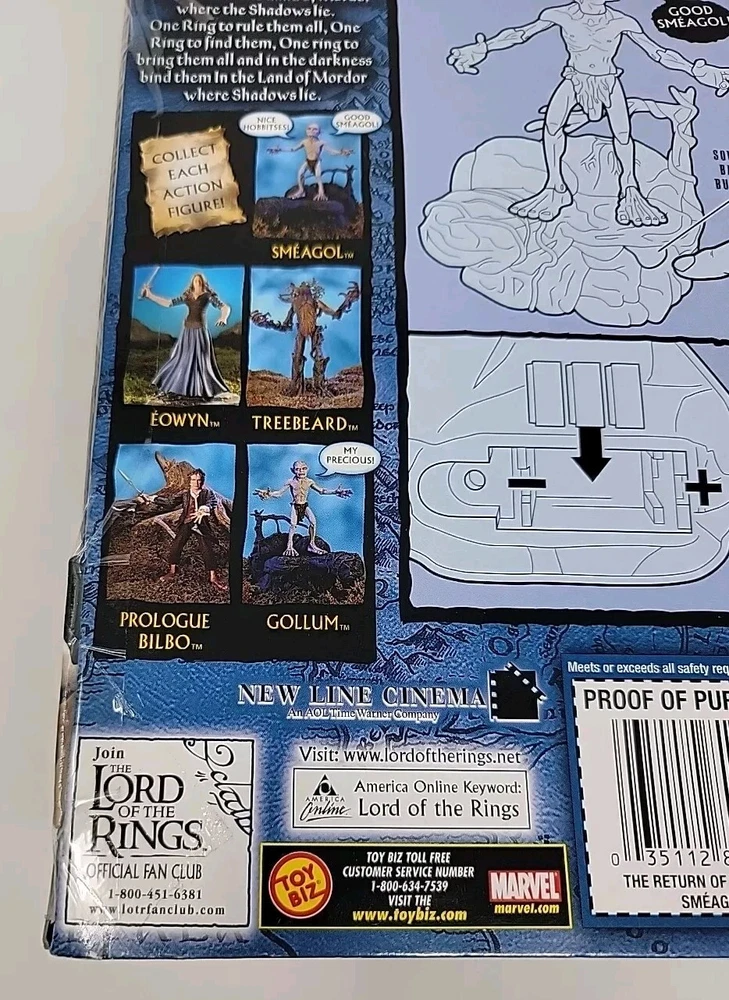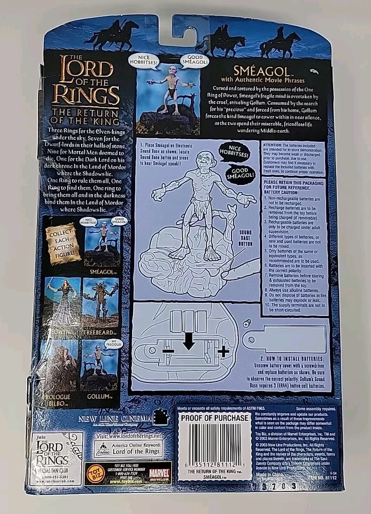 The Lord of the Rings - The Return of the King Sméagol Action Figure by ToyBiz from 2003 is a 1:12 scale collectible based on the character Smeagol from the movie. It includes a Ring accessory and is part of The Lord of the Rings franchise. It features the artist Lorde and was manufactured in the 2000-2009 time period.