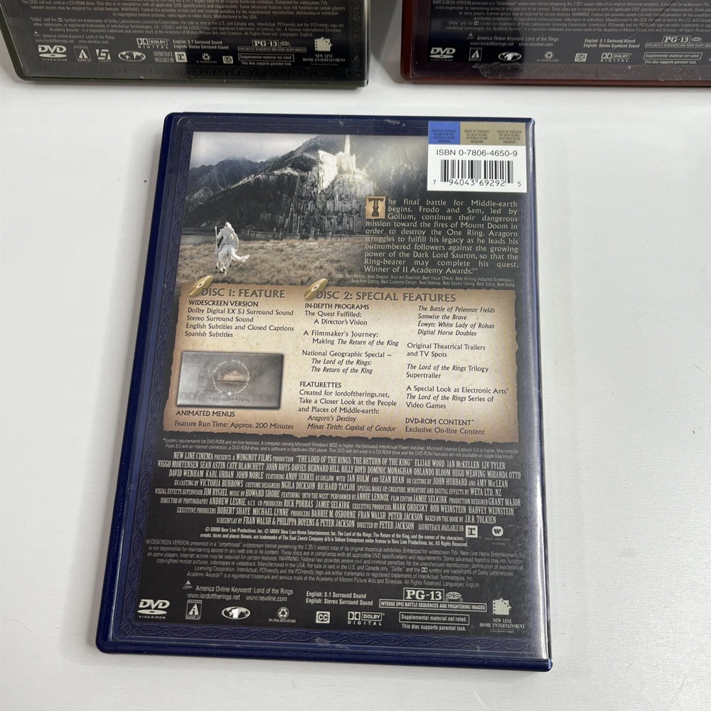 The Lord of the Rings Trilogy Lot of 3 DVD 2-Disc Collection Widescreen. Light wear to cases with all discs in very good condition. Shipped USPS media mail.