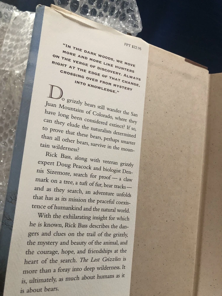 For sale is a used Good The Lost Grizzlies : A Search for Survivors in the Wilderness of Colorado by. Rick Bass Condition is Good. Hardcover book with Dust cover/jacket Some wear on outer jacket.Shipped with USPS Media Mail. Thank you!
