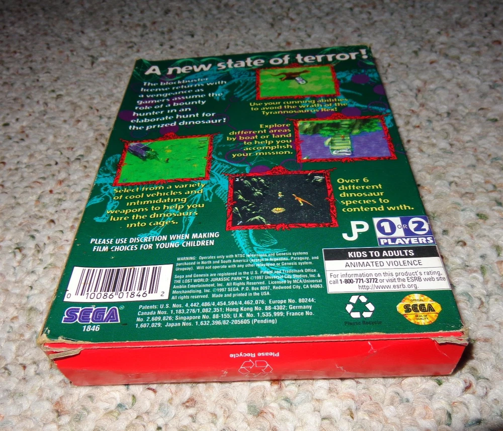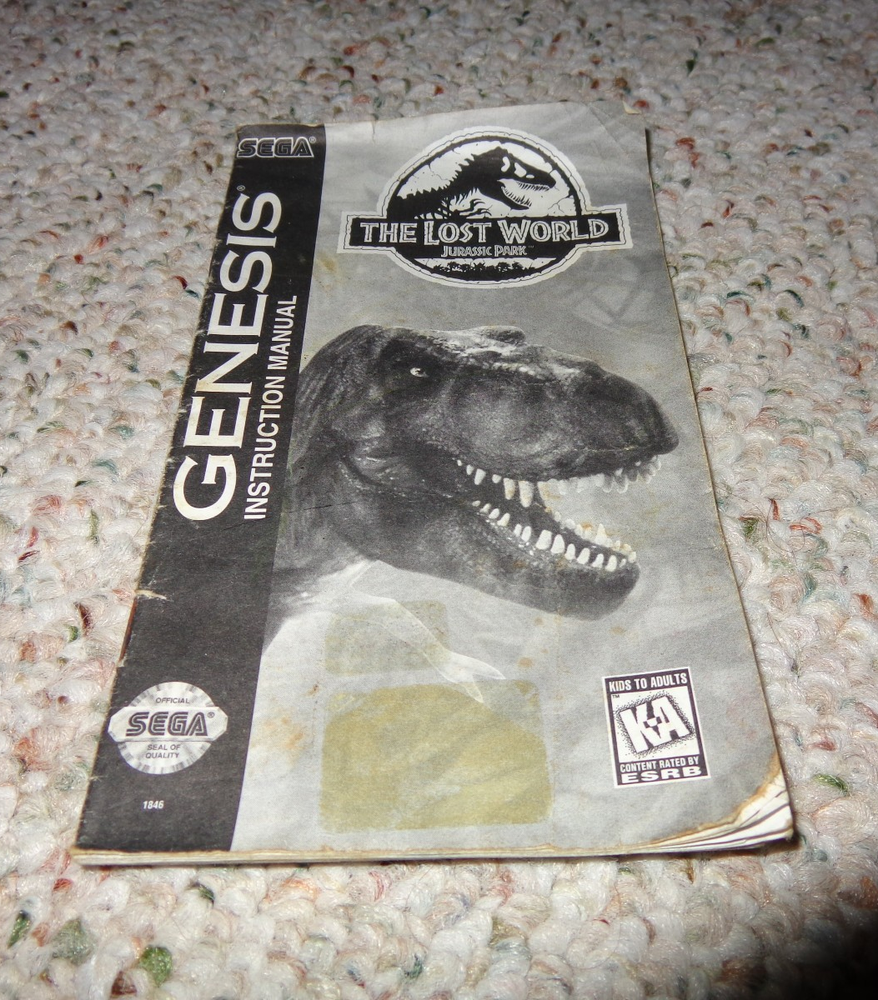 I am selling the Sega Genesis Game: Lost World Jurassic Park . It comes with box, manual and cart. The manual is in really bad shape in which it's missing pages has writing, tears, etc. The box has creases. The cart has label spine creases. Selling as is. Tested and works.