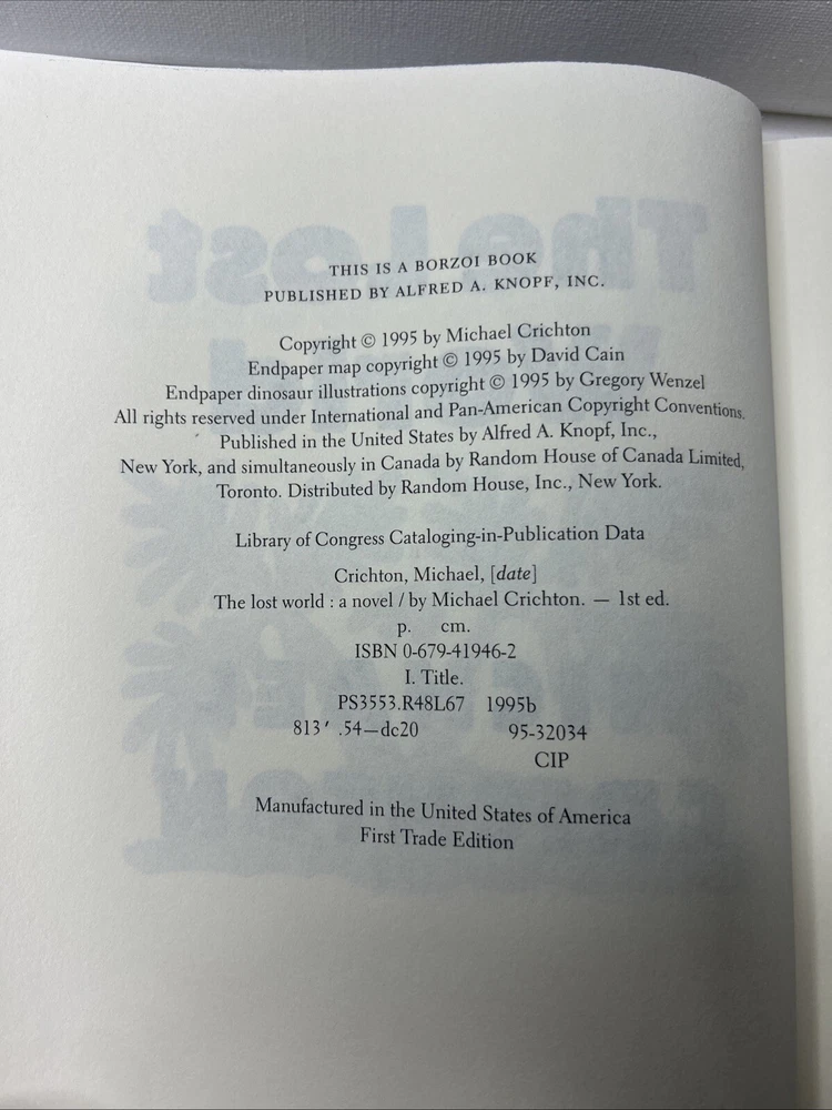 Discover the thrilling world of Jurassic Park with this hardcover first edition of "The Lost World" by Michael Crichton. This 1995 novel is a must-read for fans of science fiction, action and adventure, horror, and thrillers. The book features 1st printing, a dust jacket, and an intact price to dust jacket, making it a valuable addition to any collection. This edition is in English and has 393 pages, with a length of 9.5 inches, a height of 1.5 inches, and a width of 6.6 inches. It is suitable for young adults and adults, and is part of the Jurassic Park book series. The novel is a media tie-in and is published by Knopf Doubleday Publishing Group. Don't miss the chance to own this vintage piece of literature!