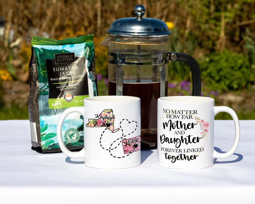 The Love Between Mother And Daughter Personalized Long Distance Mug Moving Away Product Details.. This high quality 11oz. ceramic white mug has a premium hard coat that provides crisp and vibrant color reproduction sure to last for years. Perfect for all hot & cold beverages. The highest quality printing possible is used. It will never fade no matter how many times you wash it. Material: 100% Ceramic. Print both sides. Dishwasher and Microwave Safe. High Gloss + Premium White Finish. Printed in the U.S.A. Personalized & Custom. We support personalized and custom mug to add custom, when placing an order, you can add notes to the "order note" in shipping address section. Also you can contact us directly via message. Shipping Info. Ready to ship in 1 to 2 business days, All products are made-to-order and proudly printed in the United States. Shipped by USPS and DHL, You will receive your order in 5-7 days. Replace & Refund. All products are defective during shipping broken, chipped will be replaced free of charge. You are not satisfied with the product, we will refund 100% money to you. If any other issues arise, please do not hesitate to message, we would be more than happy to assist you.