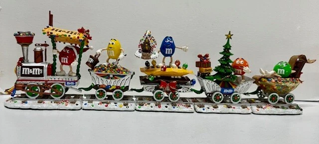 This Danbury Mint M&M’s Christmas 5 Piece Train Set is a must-have for any M&M's fan or lover of Holiday Spirit! Here comes the Holiday M & M Express!!! The vibrant and colorful intricate design of the ceramic train set is sure to impress yourself and all the family, friends and guests; actually anyone who sees it. The set includes five pieces and is a complete train, from engine to caboose and each piece is made with high-quality materials to ensure its durability. The train set features the famous M&M's doing what they do best to bring in the Christmas Cheer to your home and town. The M & M logo is world recognizable, as is, the famous M & M characters. Each train section is unique and represents a different Holiday scene. And of course the famous candy! It is an original piece, and has not been modified in any way. This set was made in China, and is the perfect addition to any collection. Get into the holiday spirit with this charming and unique train set. Also comes with two certificates of authenticity (has original owners name) and the original inspector ticket. No Box. The Train Set will be well packaged and shipped straight away. These M & Ms will not melt in your hands, but will melt the heart of all who sees her! M & M train is 16” long x 2.5” wide x 5” tall. 5 pieces There are many different variations of Christmas Train Sets, and even M & M's Christmas Train Sets, but this is the most charming by far!!!! Local collection is also available in Boca Raton, Florida. FREE SHIPPING IN USA!!!!!