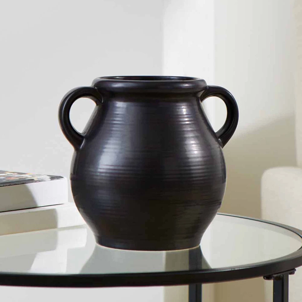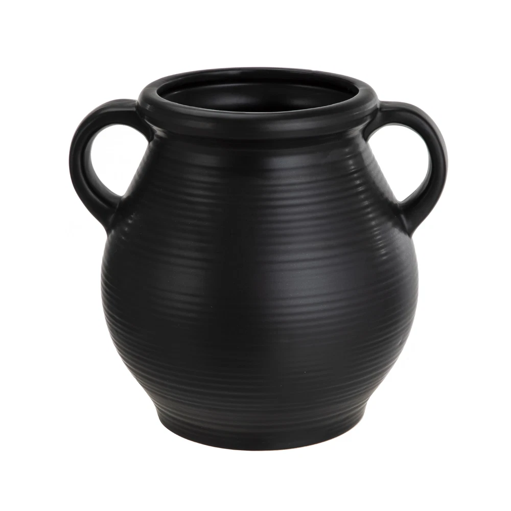 The Mainstays Black Ceramic Vase With Ribbed Finish is a timeless piece that you're sure to love. The versatile design allows you to use this as a vase or table décor. This item may be used in so many ways including holding fresh or artificial flowers, kitchen or office supplies, knitting tools, or candy to name a few. Two handles not only add detail, but also allow for easy carrying. This item was designed with longevity and class in mind. The classic, antique-inspired design pairs well with a variety of home décor styles especially classic, transitional, traditional, farmhouse, rustic and vintage. Wow your guest with this item before it's sold out! The Mainstays Black Ceramic Vase With Ribbed Finish Classic, black color Two handles not only add detail, but allow for easy carrying as well Dimensions: Measures 7.83" x 7.09" x 6.65" Lightweight Weight: 2.05 Ibs. Classic/antique inspired design pairs well with a variety of home décor styles especially classic, transitional, traditional, farmhouse, rustic and vintage Versatile design allows you to use this as a vase or table décor Created with longevity in mind Made of 100% ceramic Use with real or artificial floral Use to store many different item Unisex