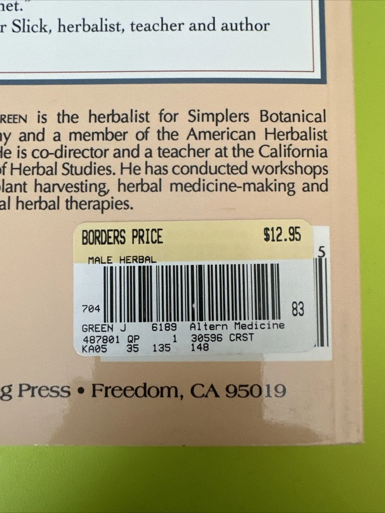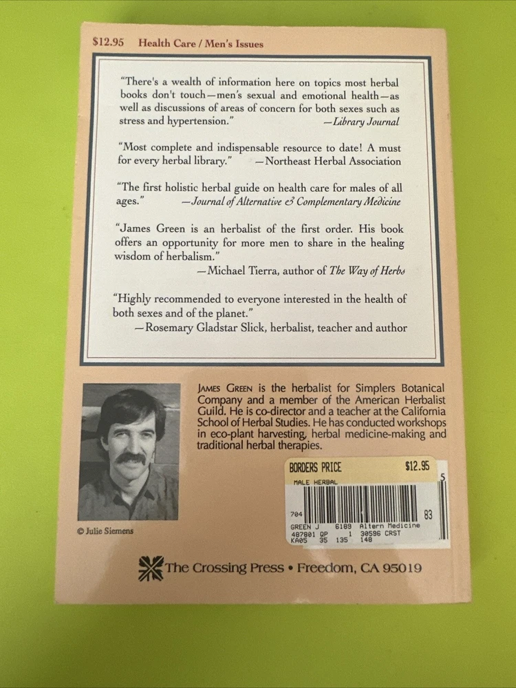 This hardcover book, titled "Male Herbal: Health Care for Men and Boys" by James Green, is a comprehensive guide to alternative therapies, men's health, and herbal medications. Published by Ten Speed Press in 1991, this book covers 278 pages of detailed information on the topic. The book measures 9 inches in length and 6 inches in width, weighing 20 oz. It is written in English and illustrated by the author. The genre of the book is health and fitness, making it a valuable resource for those interested in the topic.