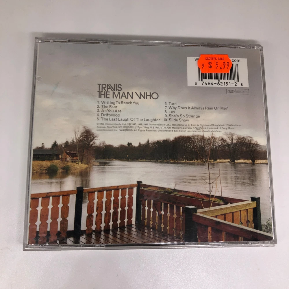 Artist: Travis (Uk) Release Title: The Man Who Genre: Rock, Britpop, Rock & Pop Seller Notes: “Guaranteed to play fine, some minor scratches and blemishes can be expected. Cases may be damaged.” Release Year: 2000 Inlay Condition: Good (G) Format: CD Style: Britpop CD Grading: Good (G) Producer: Mike Hedges, Ian Grimble, Nigel Godrich Case Condition: Good (G) Case Type: Jewel Case: Standard Record Label: Epic Type: Album UPC: 0074646215128 gtin13: 0074646215128 Run Time: 55 min.