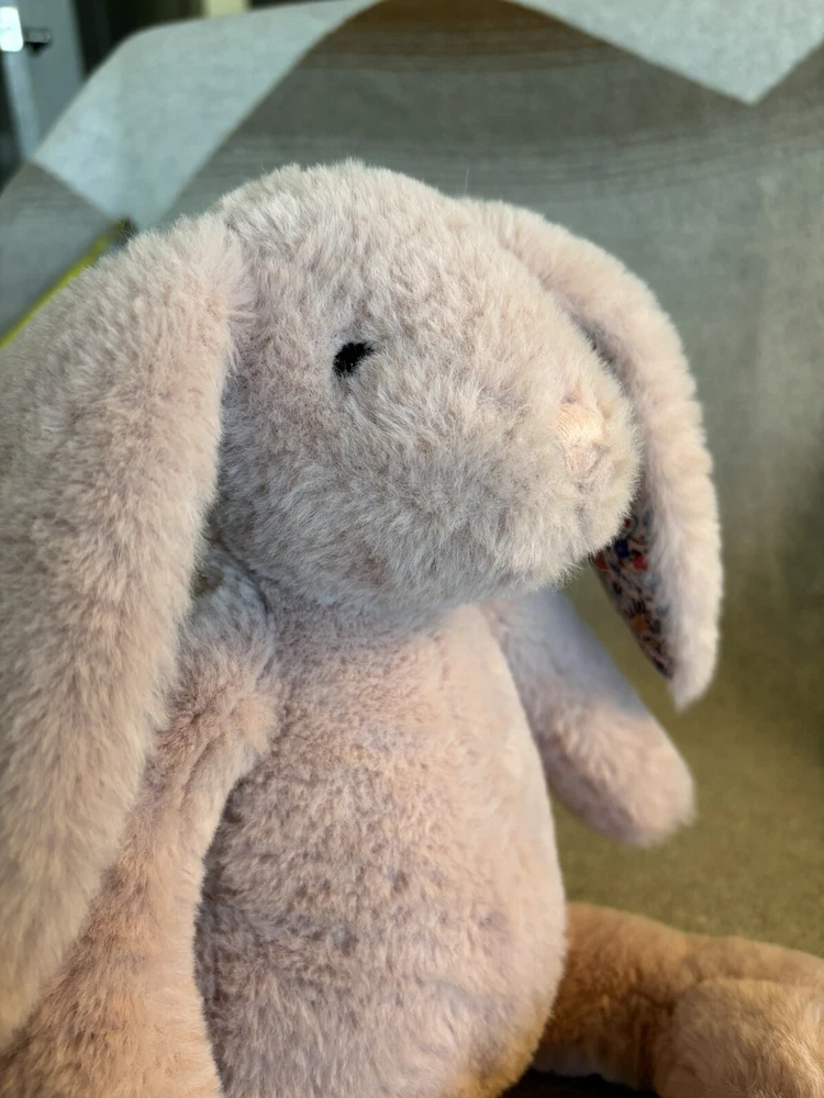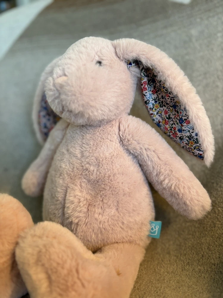 This adorable plush toy is perfect for any occasion and is sure to bring a smile to anyone's face. It features a medium size of 14-24 inches, a beautiful pink color, and a cute rabbit design that is perfect for Easter or any other occasion. With its soft and clean material, this toy is sure to provide hours of fun for children of all ages, from 3 to 100! The Manhattan Toy Co. has retired this plush toy, making it a rare find for collectors and fans alike. It is made in China and comes with an unknown California Prop 65 warning. This plush toy is part of the Bunny Rabbit character family and is a must-have for any stuffed animal collection. 087