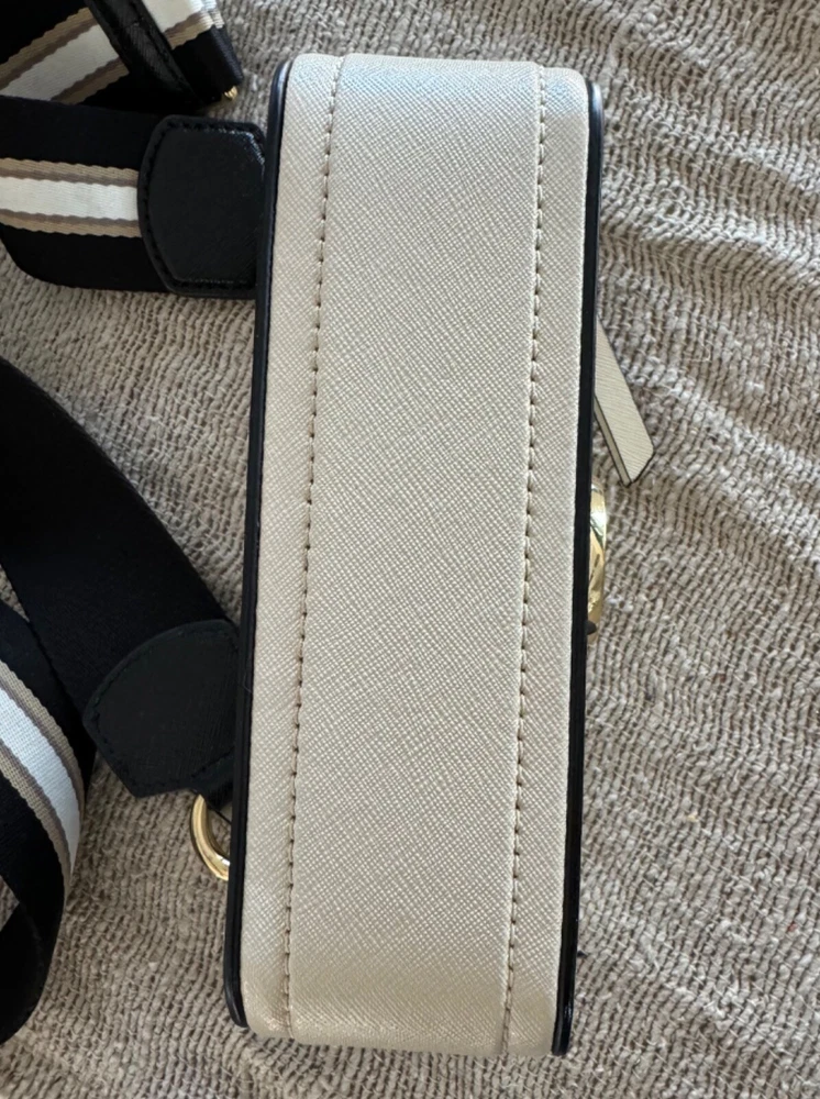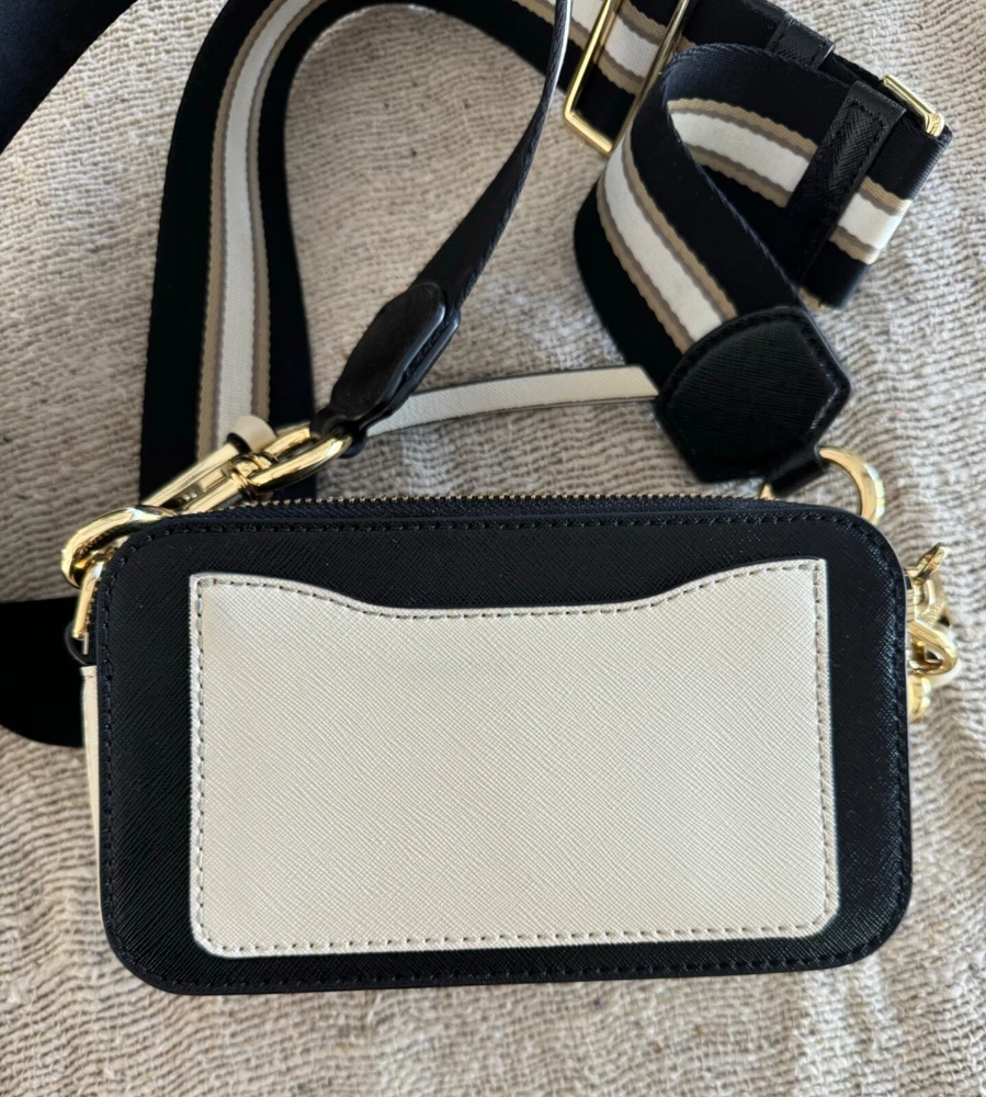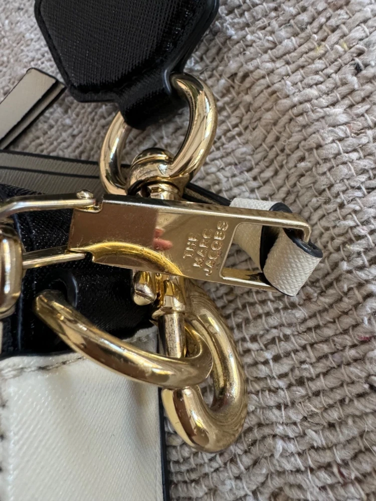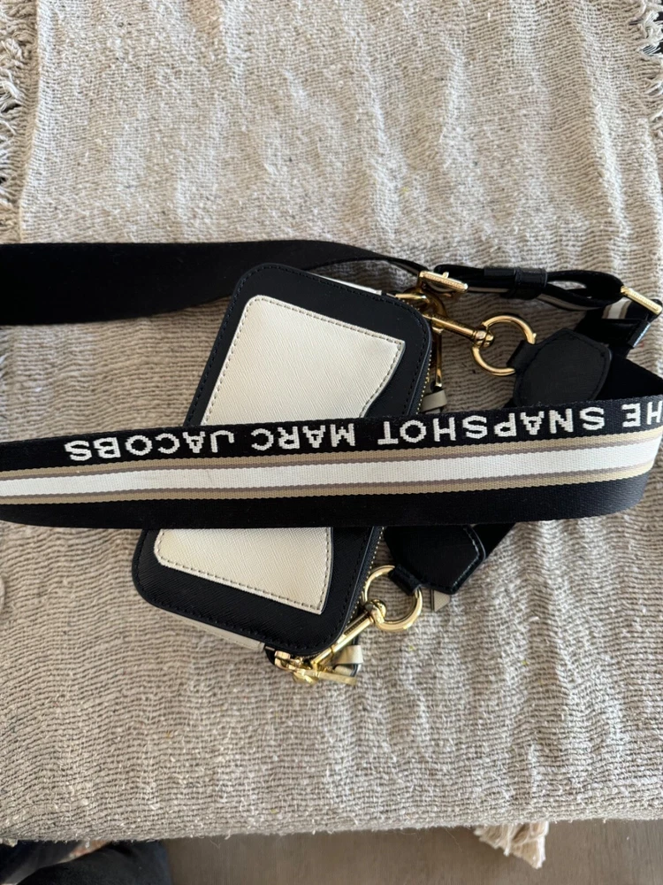 This Marc Jacobs Snap Shot Crossbody Bag OS is a stylish and functional accessory for women. It features an ivory and black leather exterior and a crossbody strap for easy and comfortable wear. The bag is perfect for everyday use and can easily fit all your essentials. The brand name Marc Jacobs speaks for itself in terms of quality and style, and this bag is no exception. It is perfect for any occasion and will elevate any outfit. Whether you're running errands or going out for a night on the town, this bag is the perfect choice. This bag is preowned, in excellent condition, the only sign that it has been used are some scuffing on the front gold J's. see picture