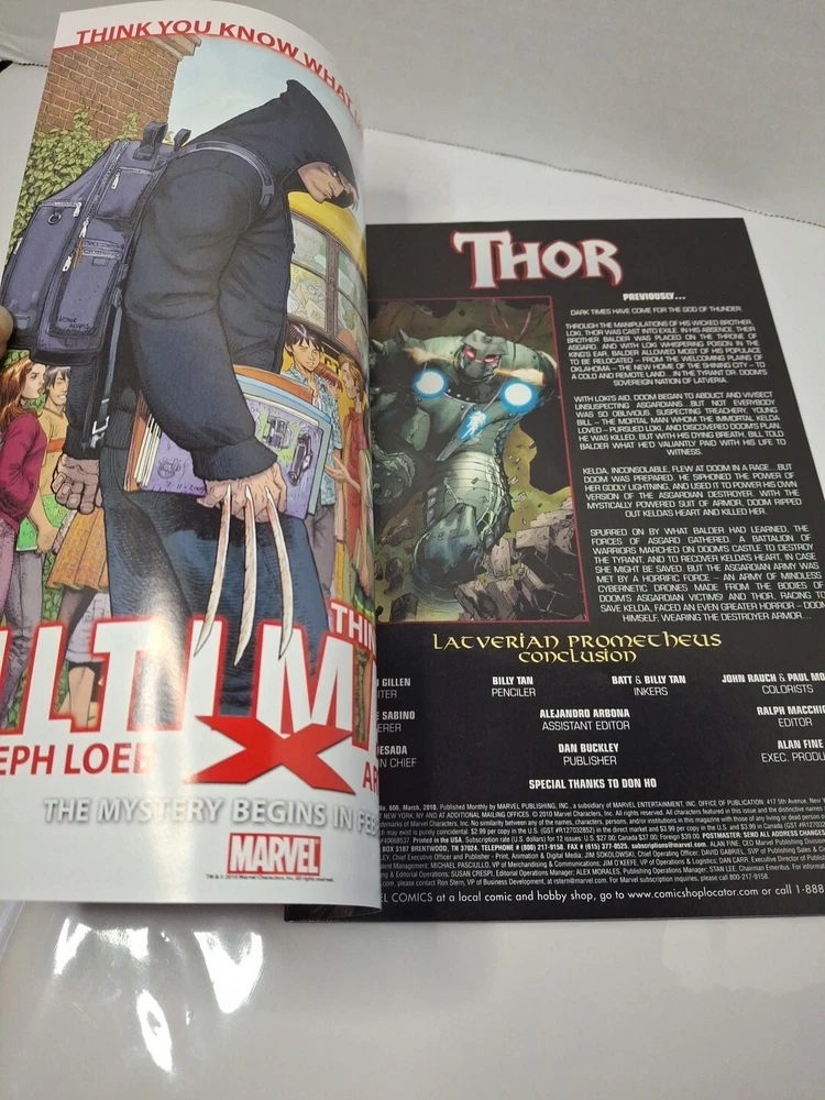Language:EnglishIssue Number:606Tradition:US ComicsGenre:Superheroes, FantasyFeatures:DirectPublisher:Marvel ComicsEra:Modern Age (1992-Now)Artist/Writer:Paul Mounts, Kieron Gillen, Billy Tan, John Rauch, Matt BanningPublication Year:2010Series Title:The Mighty ThorCover Artist:Billy Tan, Christina Strain, Matt BanningCharacter:Loki, Lady Sif, Volsstag, Doctor Doom (Victor Von Doom), TYR, Balder, Thor, Hogun, Jane Foster, Thor Odinson, Victor Von Doom, Fandrall, Kelda