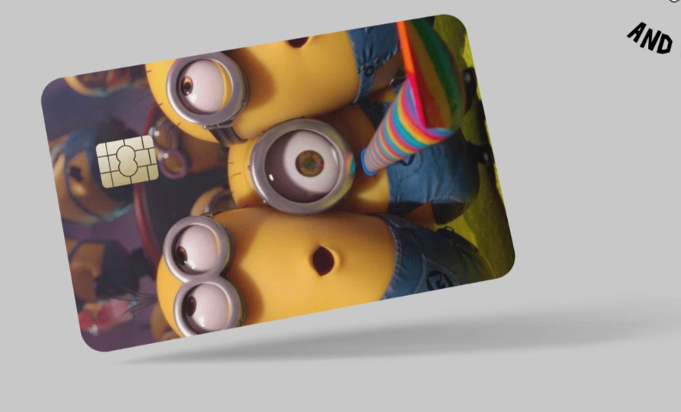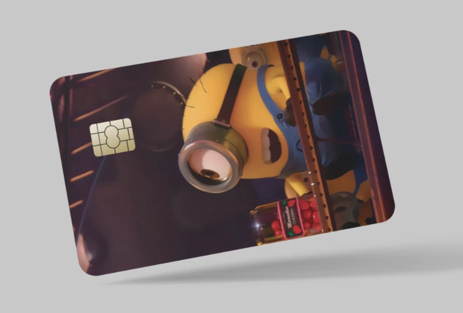 The Minions , 2 pc credit card skin & DEBIT CARD,TROLLEY & GYM,STICKER