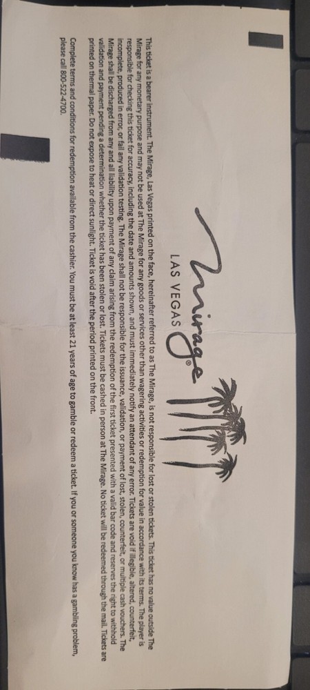 This is a rare and valuable paper ticket gaming voucher from the soon to be closed (July 17th) The Mirage casino in Las Vegas, Nevada. The voucher features the iconic Las Vegas Casino voucher and has a denomination of .81 cents. It is a must-have for any collector of casino chips or memorabilia. The location of the voucher is Las Vegas, adding to its value and authenticity. This item is perfect for anyone who wants to own a piece of the Las Vegas Casino history. Shipping/Handling is $4.95 for USPS shipping with tracking number. My orders ship within 48 hours after payment has been received. Thanks for looking.