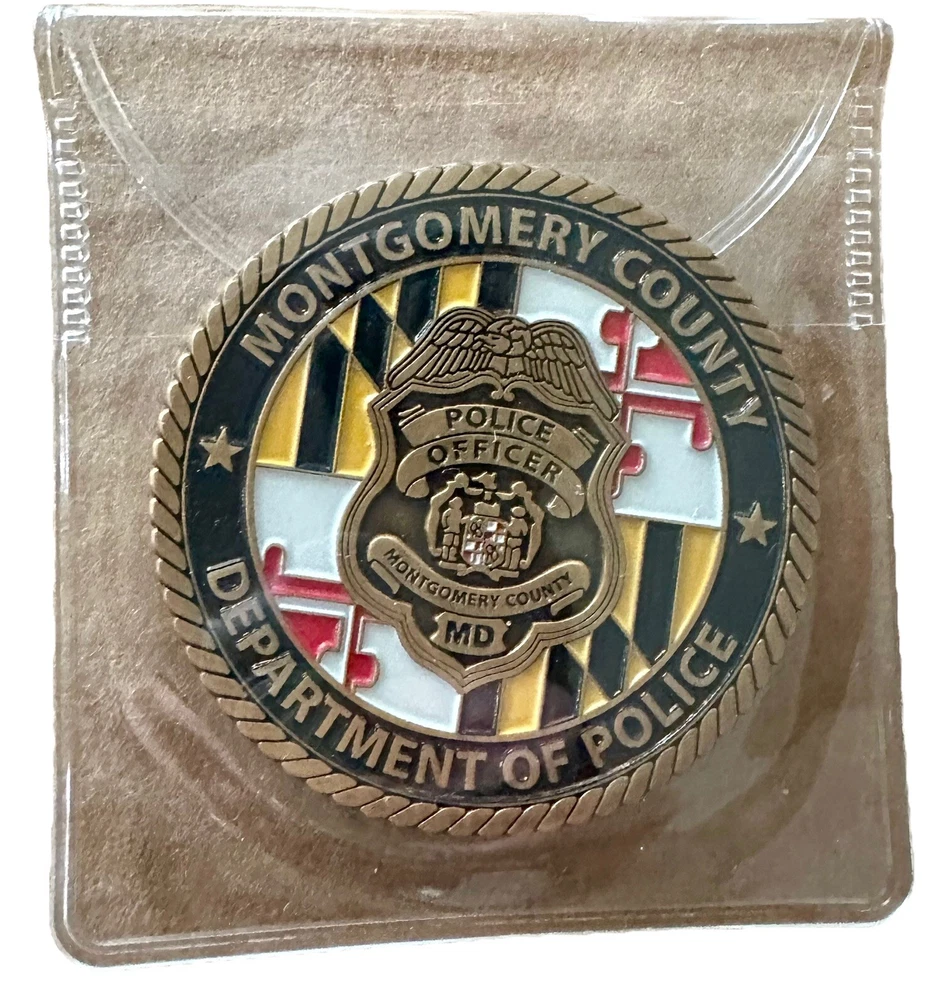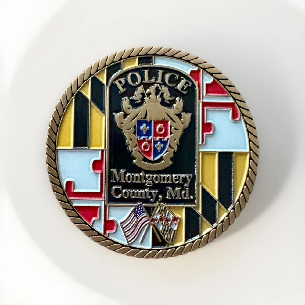 This challenge coin is a must-have for collectors of militaria and law enforcement memorabilia. The design features the logo of the Montgomery County Police Department and is an original piece, perfect for those who appreciate the history and tradition of police work. Whether you're a veteran or simply a collector, this challenge coin is a valuable addition to your collection. The coin is a great way to show your support for the Montgomery County Police Department and the brave men and women who serve our community. It is made from high-quality materials and is an original, one-of-a-kind piece. Don't miss out on the opportunity to own this unique and valuable challenge coin.
