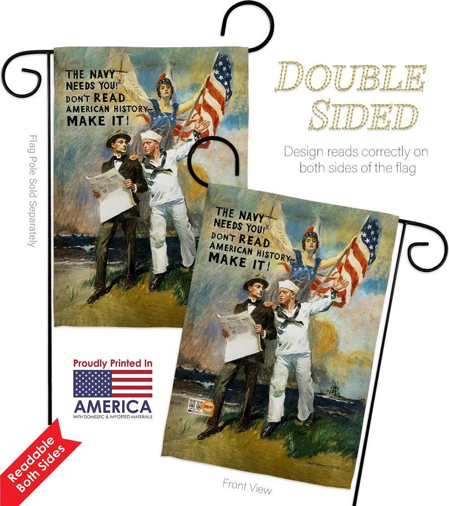 The Navy Needs You Garden Flag Pack Armed Forces USN Seabee United State Amer...