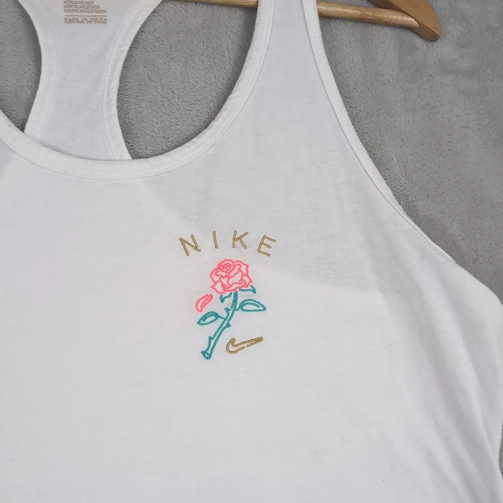 The Nike Tee Large Women's White Tank Top Rose Design