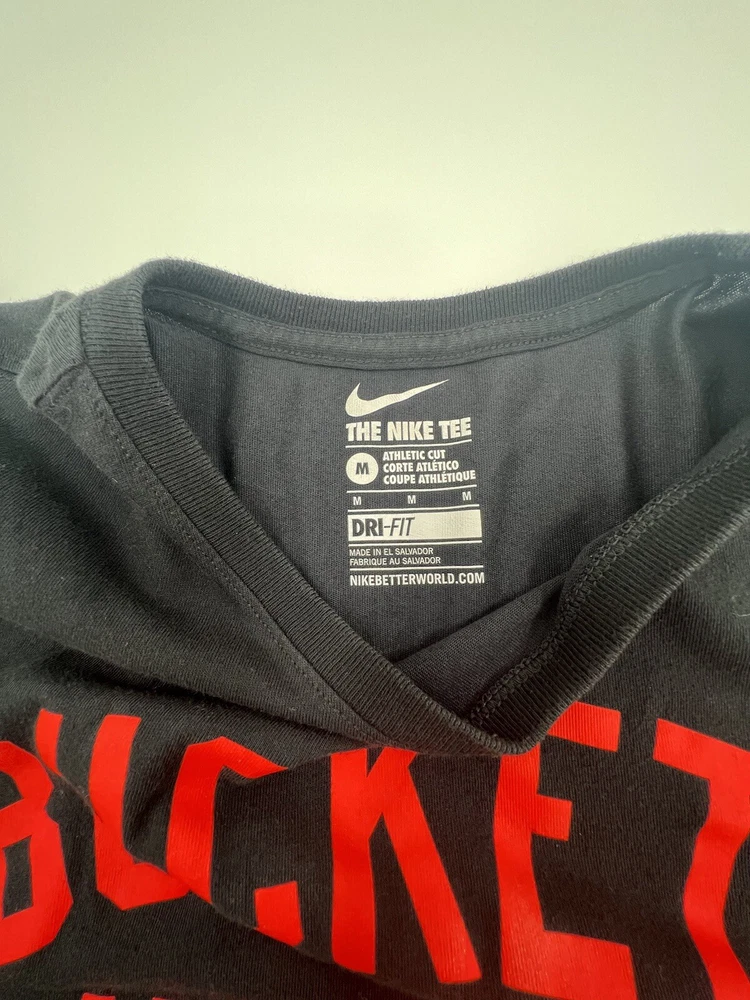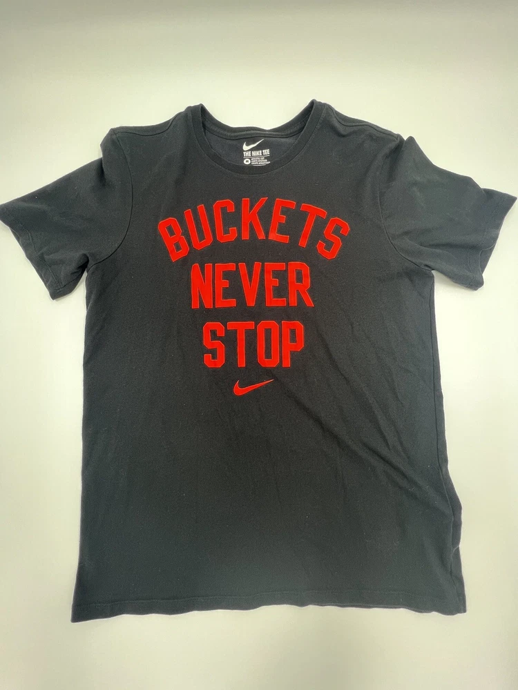 The Nike Tee Mens T Shirt Medium M Dri Fit Athletic Cut Buckets Never Stop Logo