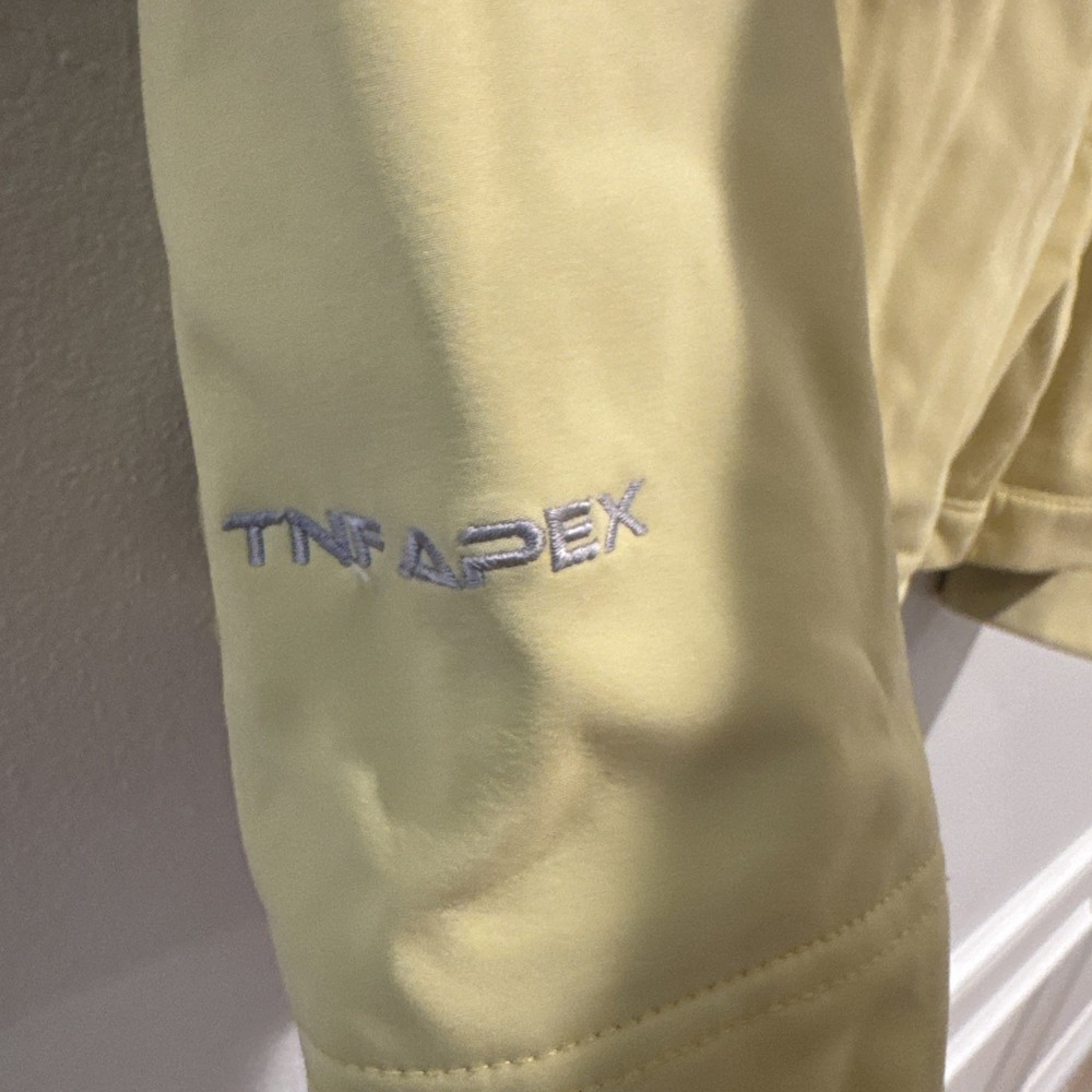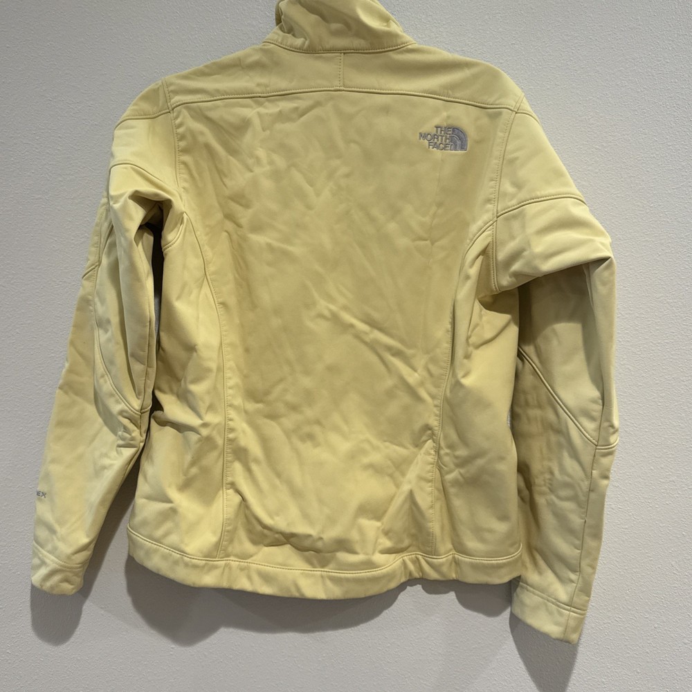 The North Face AMVX Yellow Windproof Apex Bionic Jacket for Women in size M is a stylish and functional outerwear option for cold weather. Made from polyester with a softshell fabric type, this mid-length jacket features long sleeves and a windproof closure, making it perfect for casual occasions in winter, fall, and spring. With a solid yellow color and The North Face branding, this jacket combines practical features with a trendy design, ideal for outdoor activities and everyday wear. Easy to care for with machine washable polyester lining and insulation, this jacket is a must-have for any active woman's wardrobe.