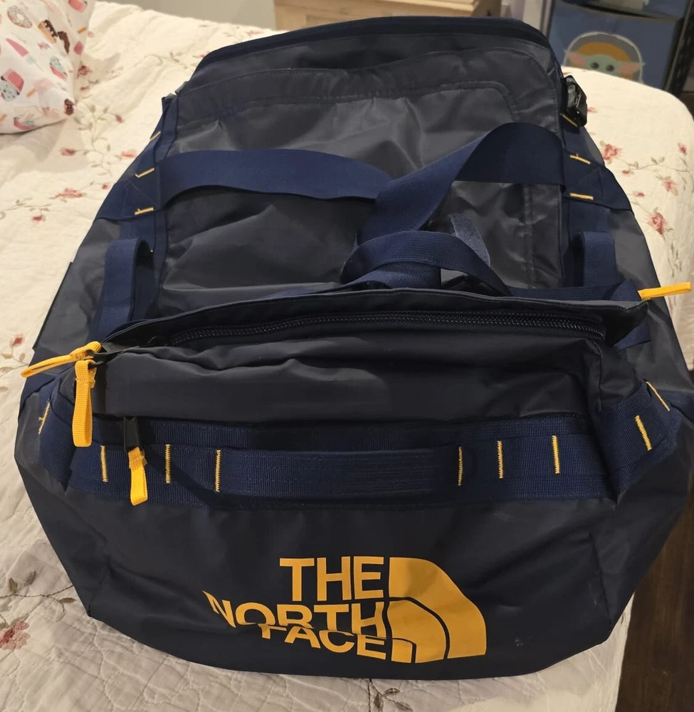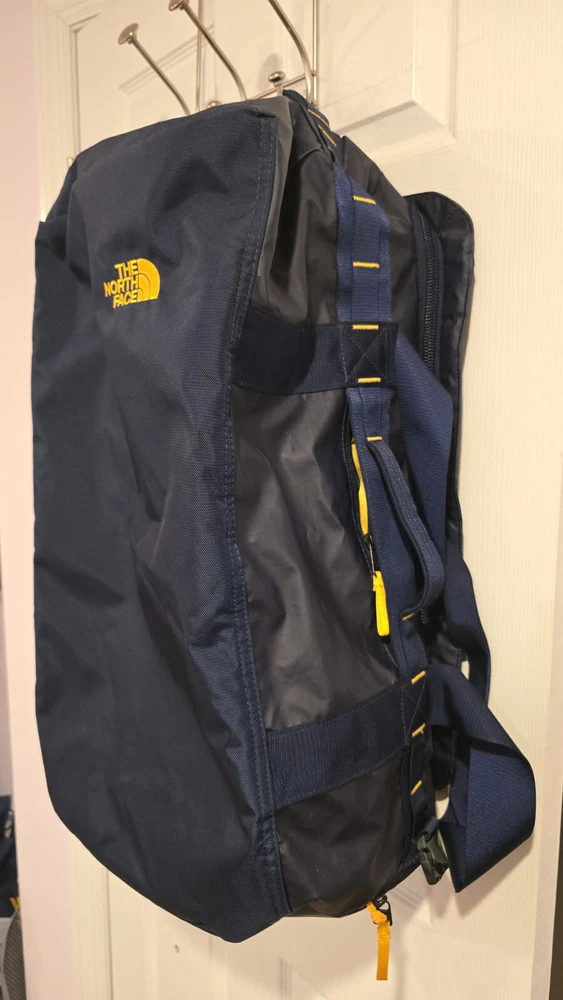 In excellent condition, almost new , gently used few times only. Originally $155. The North Face Base Camp Voyager 62L Duffel is a game-changing update to the iconic Base Camp Duffel. Sized for multi-day trips, it now includes more internal organization and a 100%-recycled body material that is lighter than the original but just as durable. The Base Camp Voyager 62L features an Internal, secure-zip pocket to hold small essentials, comfortable, padded shoulder straps that unclip and conceal behind the back panel so you can carry it as a backpack or duffel, and an adjustable divider in the main compartment lets you position your gear, or you can remove the divider completely. This North Face Voyager Duffel was fashioned with Lightweight, 100% recycled, durable fabric, and it has a small, external, secure-zip pocket for quick-access items such as a passport. The North Face Bace Camp Voyager 62L Duffel is a great choice for on the go adventure. Key Features Water-resistant ID window on side Side handles cause the duffel to sit away from your body so it doesn’t swing into your side when you’re walking Adjustable divider in the main compartment lets you position your gear, or you can remove the divider completely Comfortable, padded shoulder straps unclip and conceal behind the back panel so you can carry it as a backpack or duffel 300D recycled polyester tarpaulin with non-PFC durable water-repellent (non-PFC DWR) finish