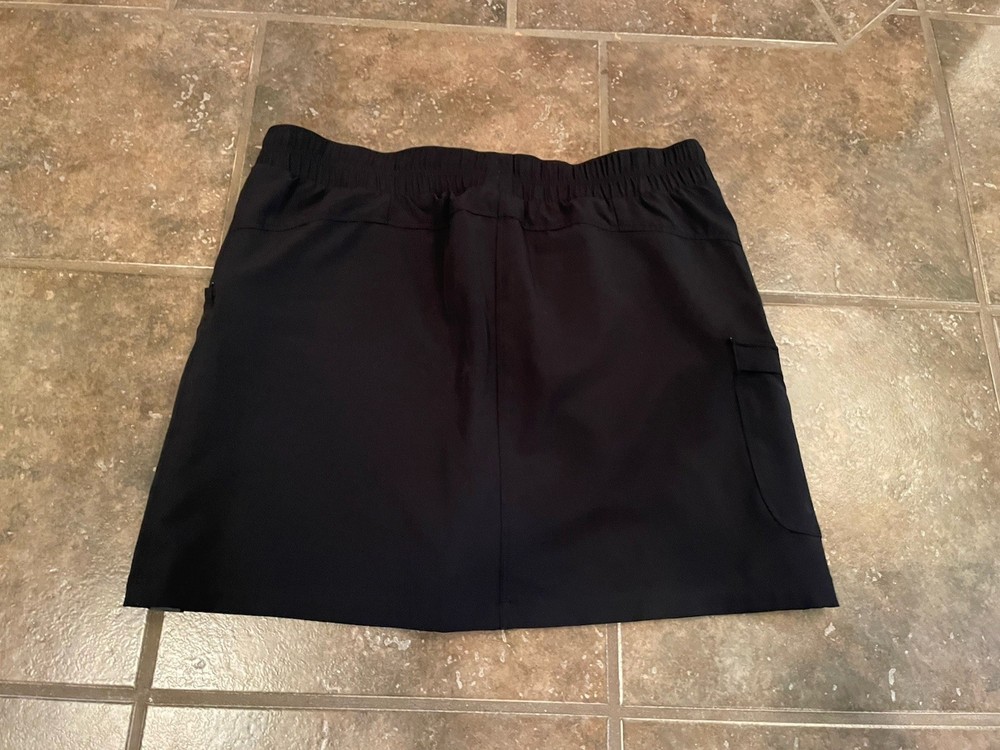 The North Face Black Athletic Skort in size M is a versatile activewear piece designed for women. Made from a durable polyester blend material, this skort features a tie closure and is perfect for hiking adventures. The classic black color adds a sleek and stylish touch to the performance-driven design, making it a must-have for outdoor activities. With The North Face branding, you can trust that this skort is both high-quality and built for durability. Three pockets 32 waist 16.25 length smoke and pet free home