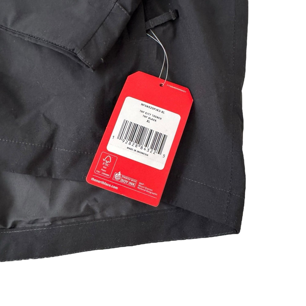 Theme:CityColor:BlackVintage:NoClosure:Zip, SnapModel:The North Face City TrenchCountry/Region of Manufacture:VietnamOuter Shell Material:100% PolyesterJacket/Coat Length:Mid-LengthPattern:SolidFit:RegularHandmade:NoSeason:Winter, Fall, SpringOccasion:CasualType:JacketSize:XLFeatures:Hoodedgtin13:Does Not ApplyDepartment:MenGarment Care:Machine WashableSize Type:RegularUPC:Does Not ApplyStyle:WindbreakerBrand:The North Face