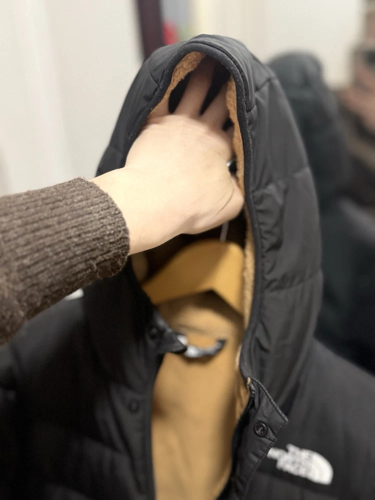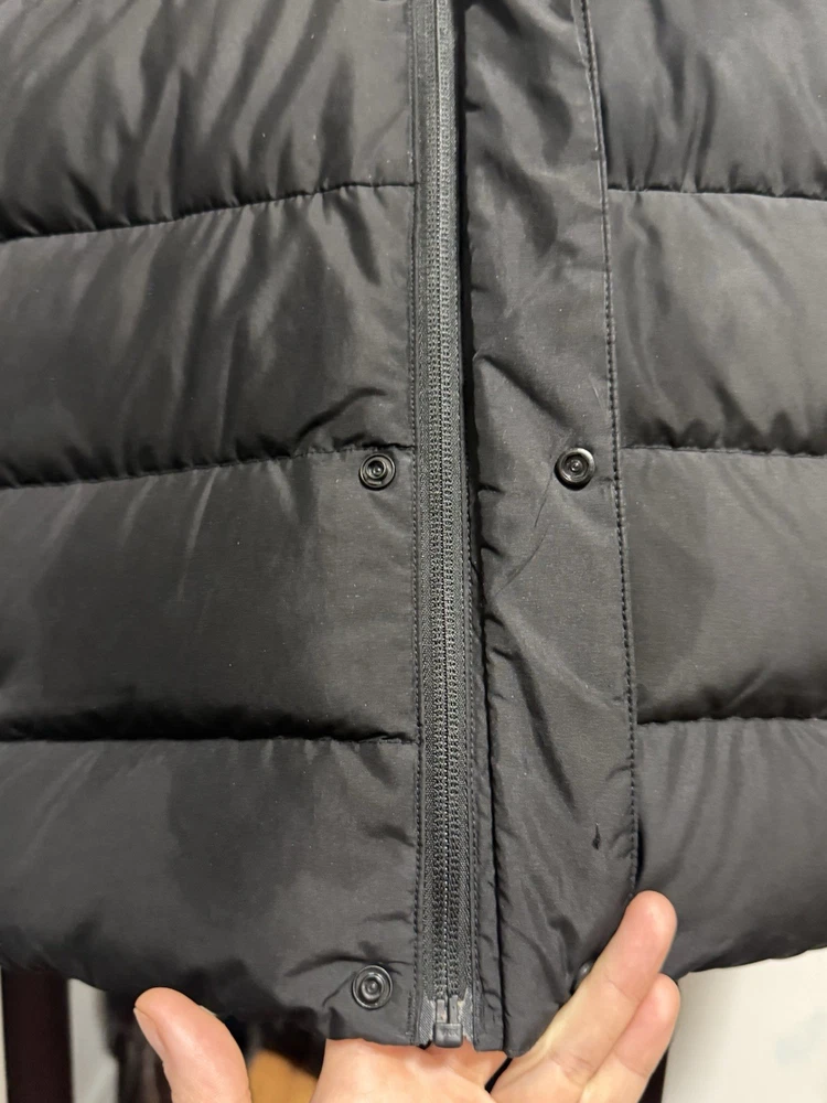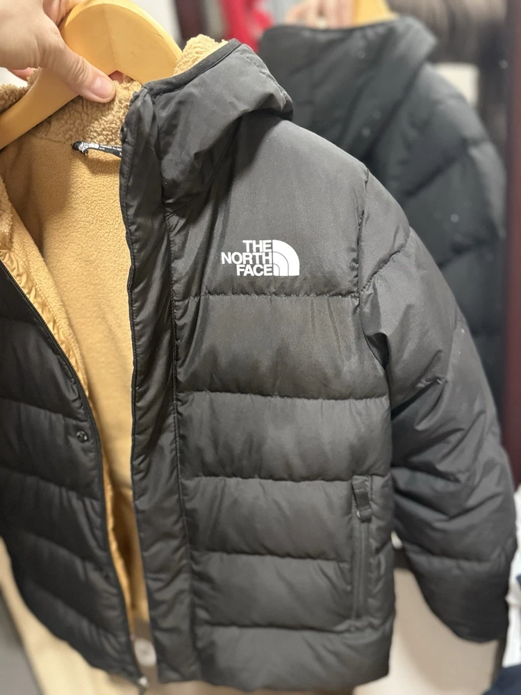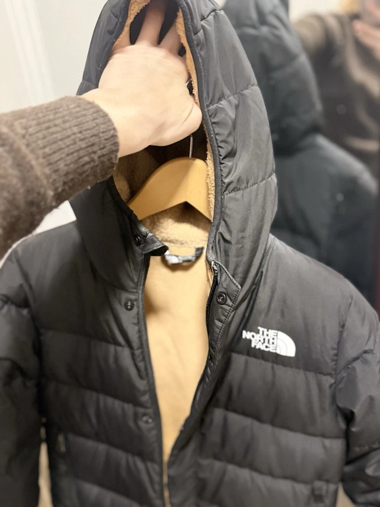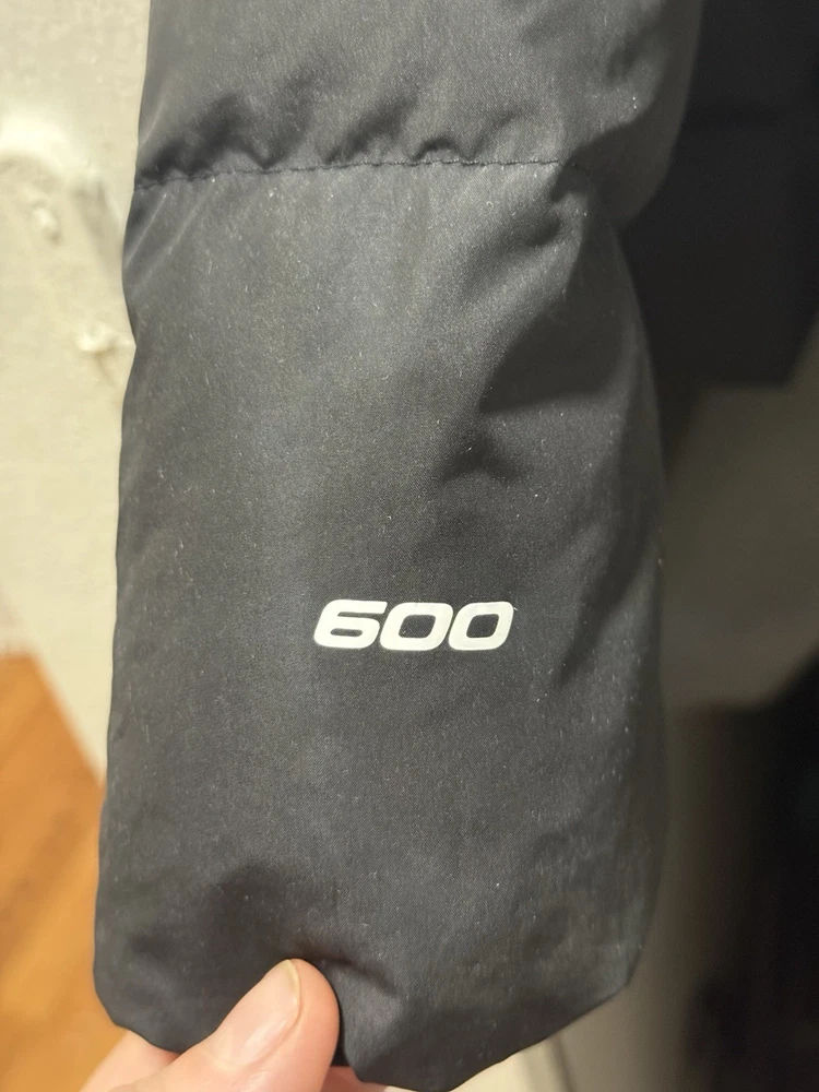 The North Face kids puffer jacket (600 fill), black with hood. Very warm, in great condition. No rips, holes, or damage. Down is evenly distributed (not flat or clumped). From a smoke-free, pet-free home. Care/washing instructions: please refer to the inner label. See photos for details.