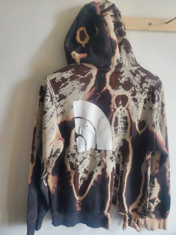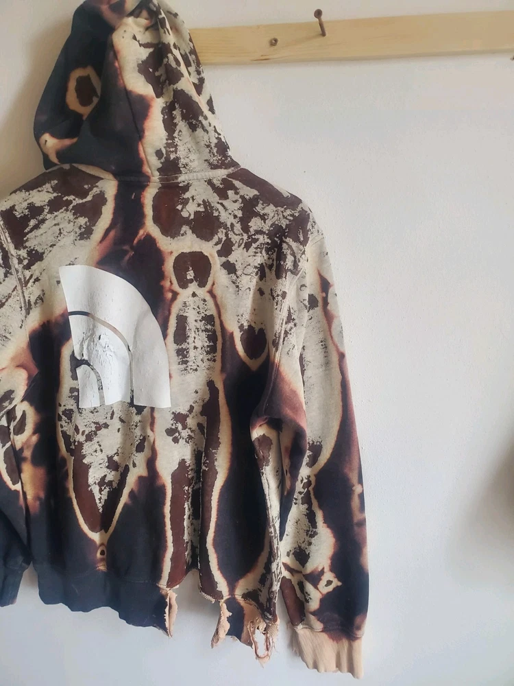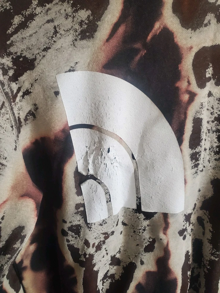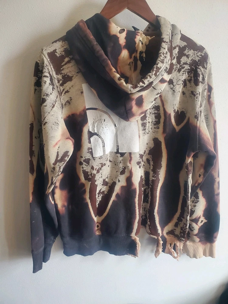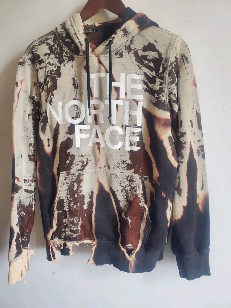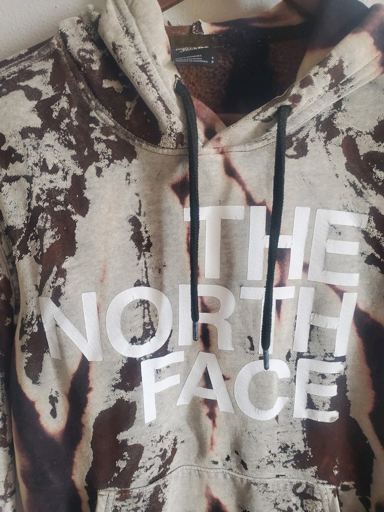 Elevate your casual style with this trendy black and white tye-dye The North Face hoodie sweater. Made of high-quality cotton fleece material, this pullover is perfect for all seasons and features a comfortable crew neck design. Ideal for outdoor activities such as hiking and crossfit, this regular-sized sweater is also suitable for gym training and casual wear. Its solid pattern and distressed detailing add a touch of uniqueness to your wardrobe. Get your hands on this must-have The North Face sweater for men today!